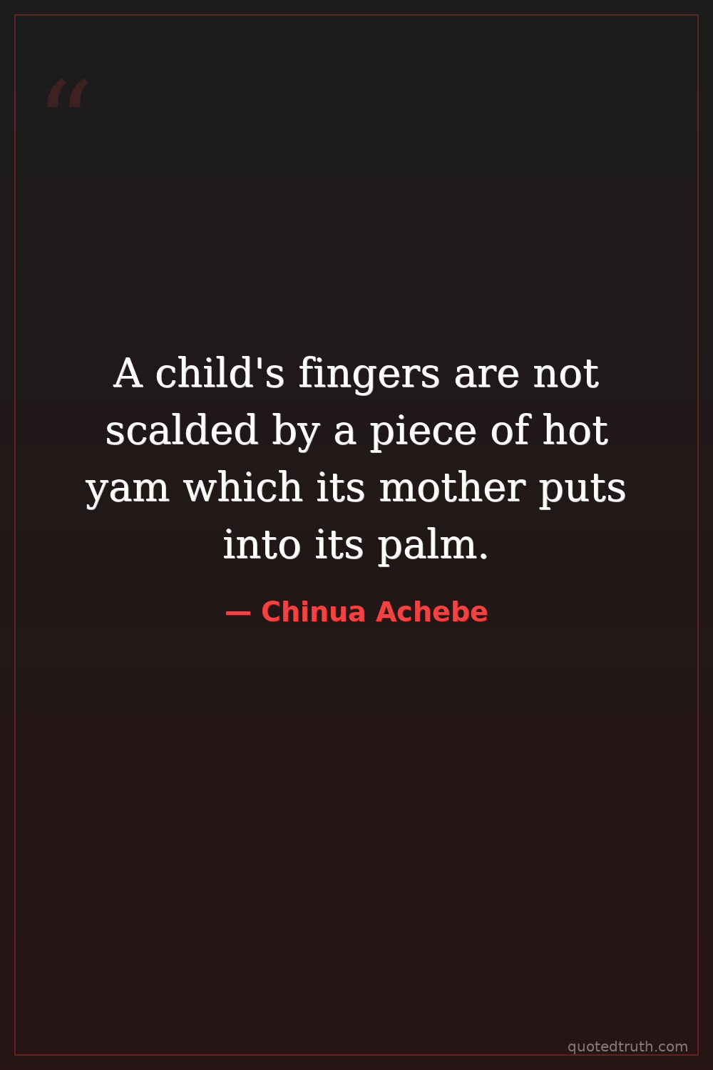 A child's fingers are not scalded by a piece of hot yam which its mother puts into its palm.