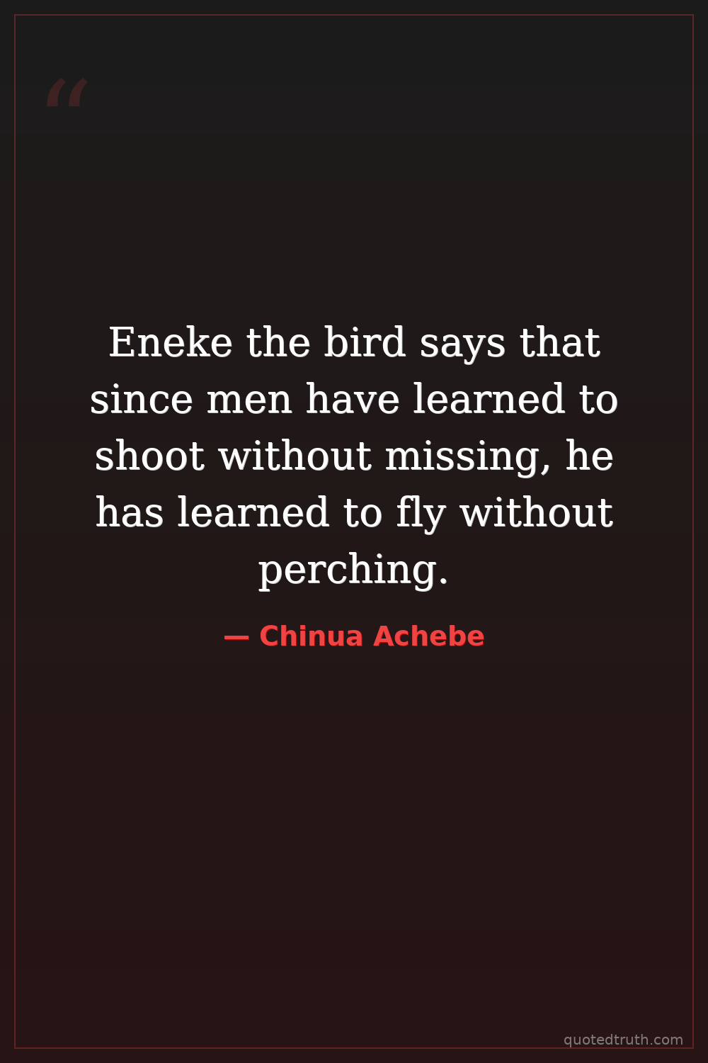 Eneke the bird says that since men have learned to shoot without missing, he has learned to fly without perching.