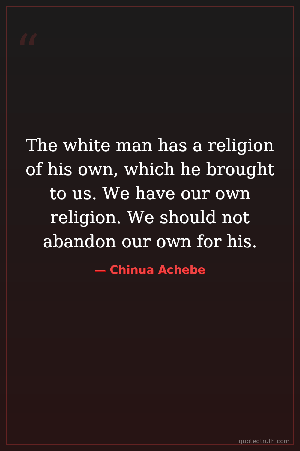 The white man has a religion of his own, which he brought to us. We have our own religion. We should not abandon our own for his.