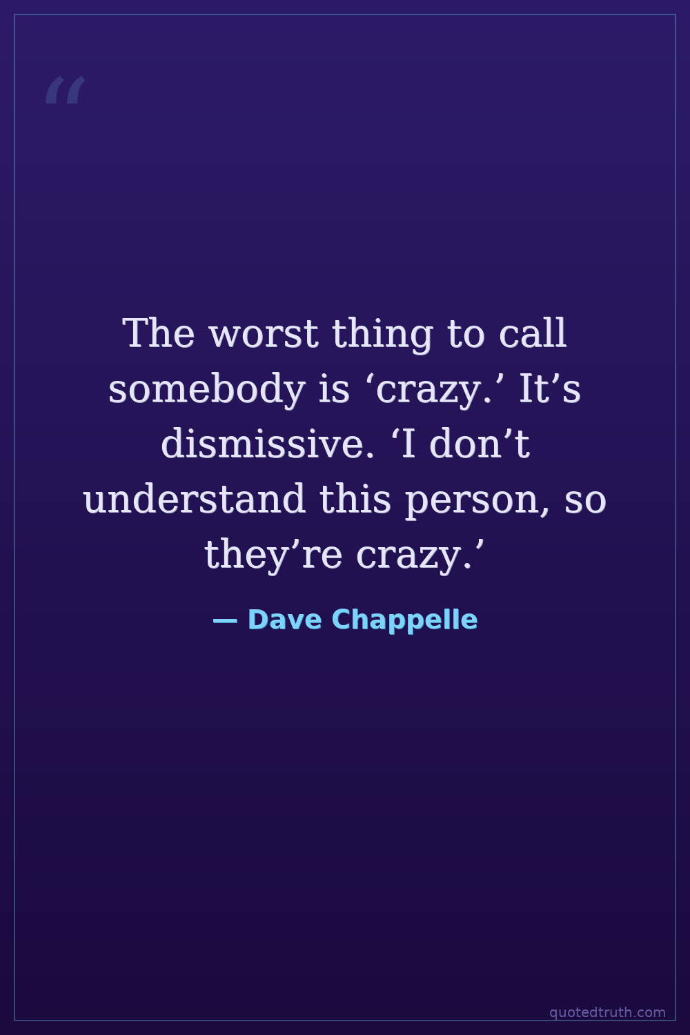 The worst thing to call somebody is ‘crazy.’ It’s dismissive. ‘I don’t understand this person, so they’re crazy.’