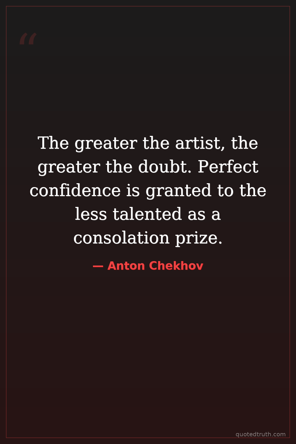 The greater the artist, the greater the doubt. Perfect confidence is granted to the less talented as a consolation prize.