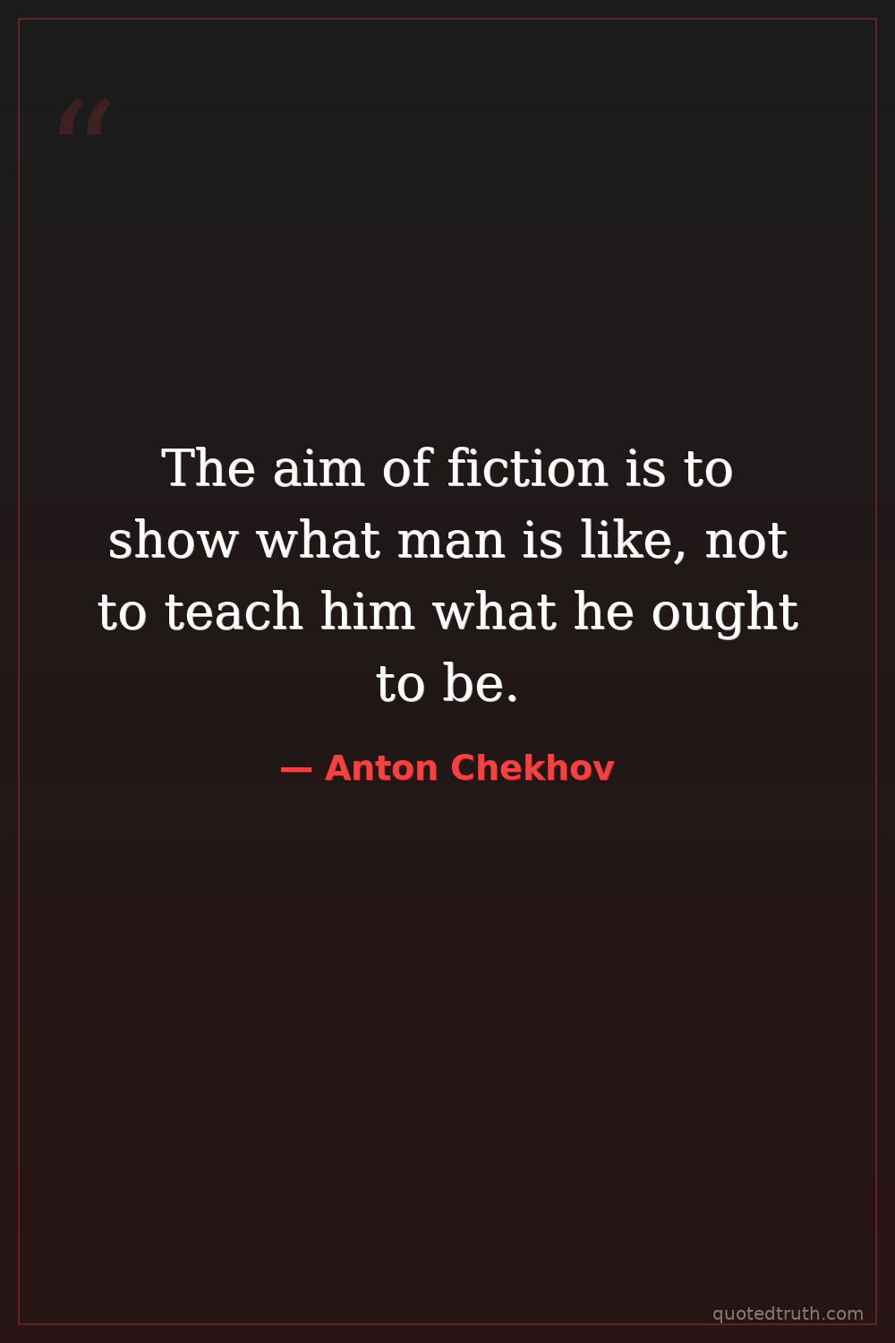 The aim of fiction is to show what man is like, not to teach him what he ought to be.