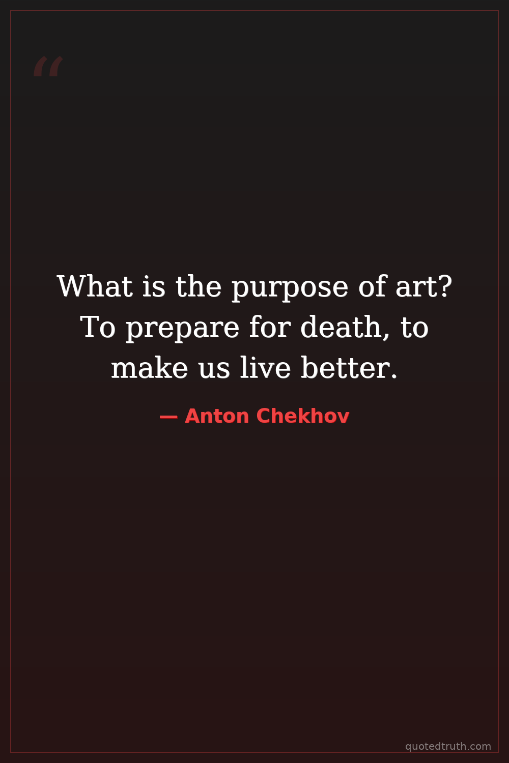 What is the purpose of art? To prepare for death, to make us live better.