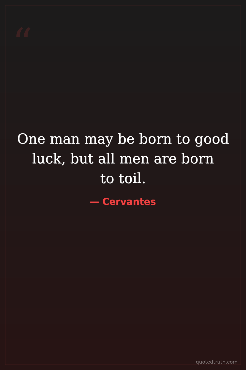 One man may be born to good luck, but all men are born to toil.