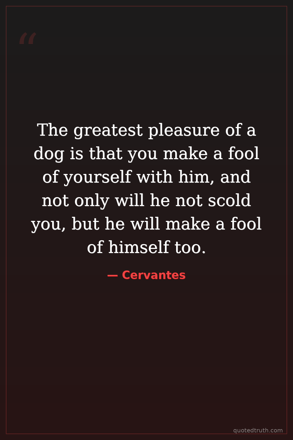 The greatest pleasure of a dog is that you make a fool of yourself with him, and not only will he not scold you, but he will make a fool of himself too.