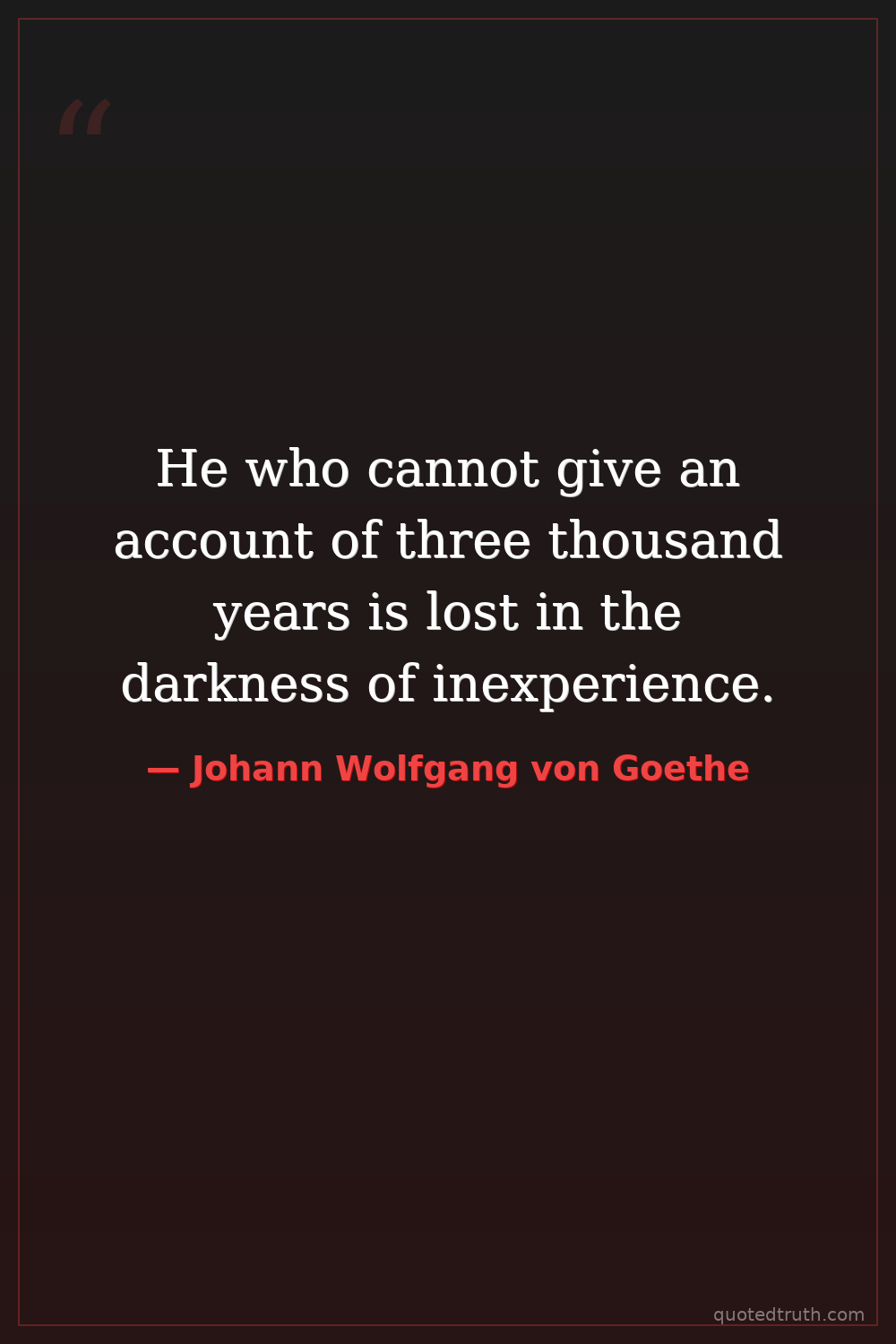 He who cannot give an account of three thousand years is lost in the darkness of inexperience.