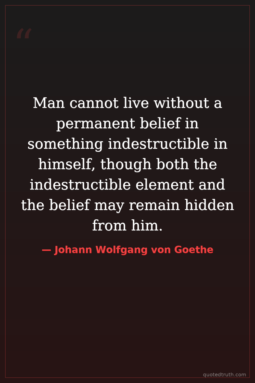Man cannot live without a permanent belief in something indestructible in himself, though both the indestructible element and the belief may remain hidden from him.