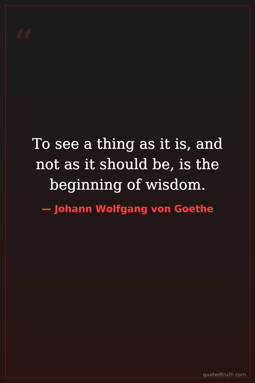 To see a thing as it is, and not as it should be, is the beginning of wisdom.