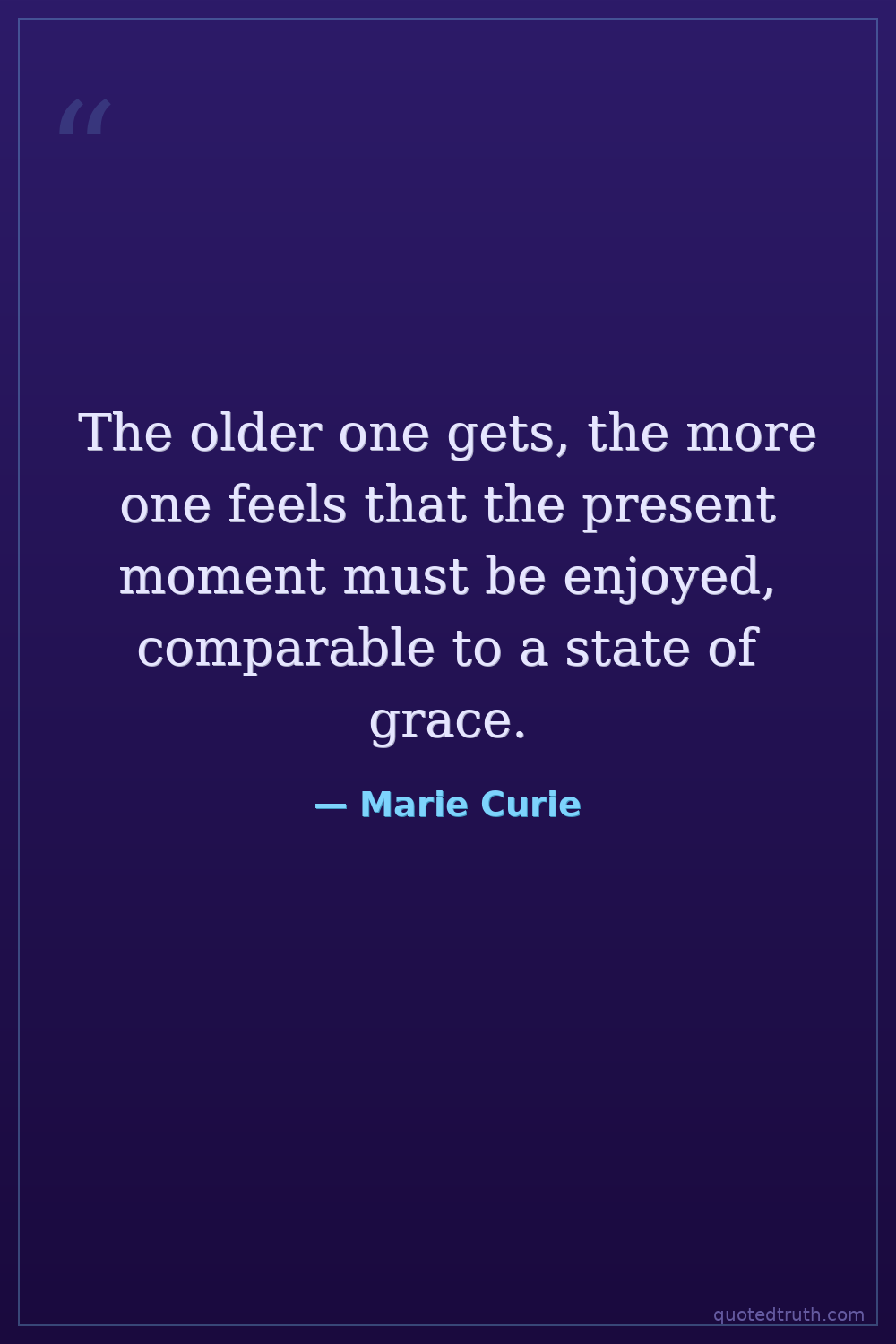 The older one gets, the more one feels that the present moment must be enjoyed, comparable to a state of grace.