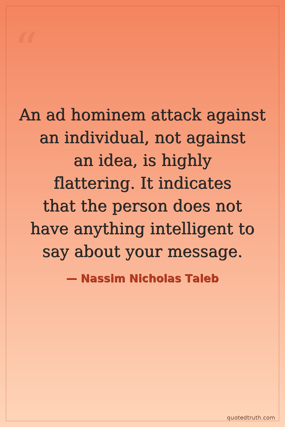 An ad hominem attack against an individual, not against an idea, is highly flattering. It indicates that the person does not have anything intelligent to say about your message.
