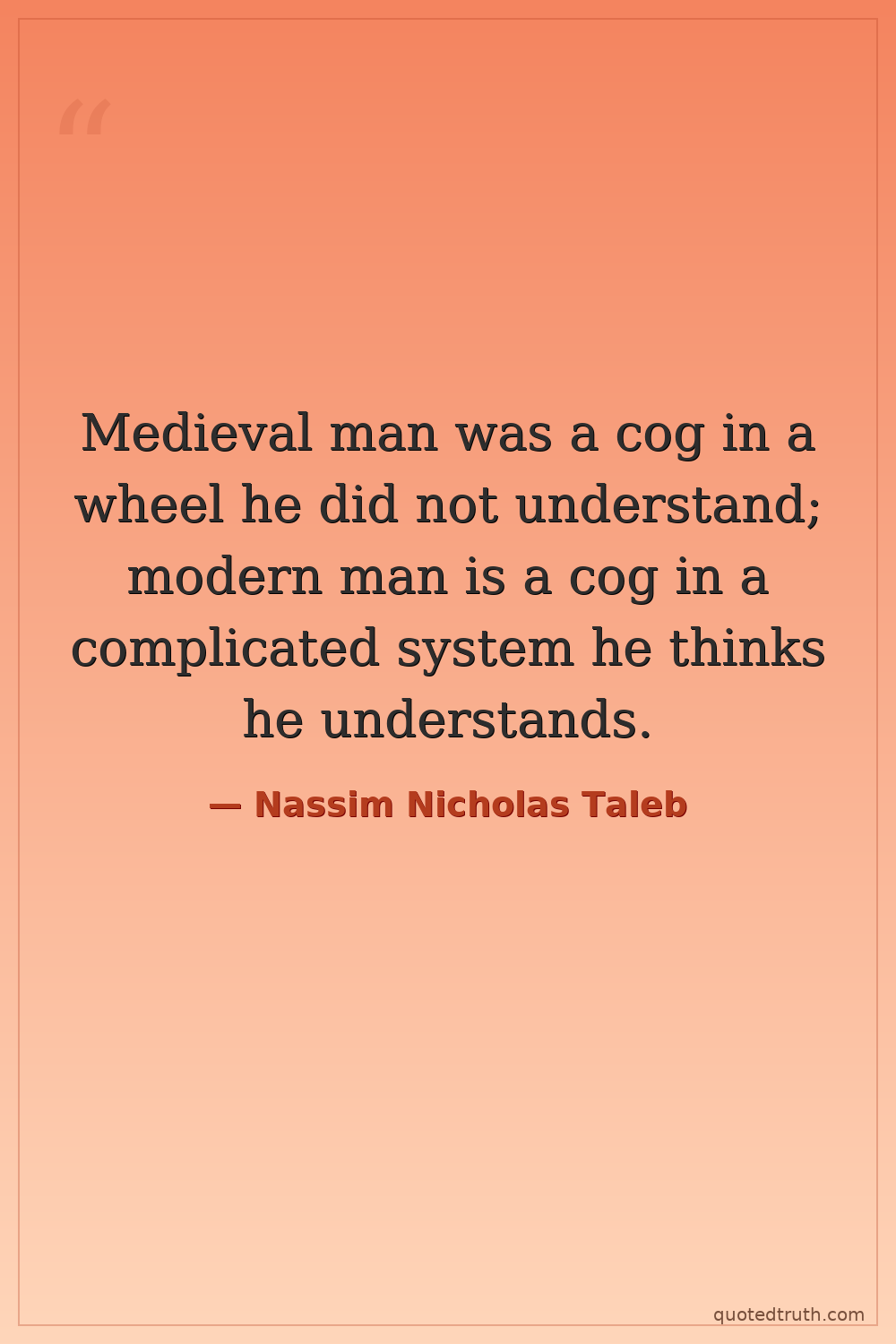 Medieval man was a cog in a wheel he did not understand; modern man is a cog in a complicated system he thinks he understands.