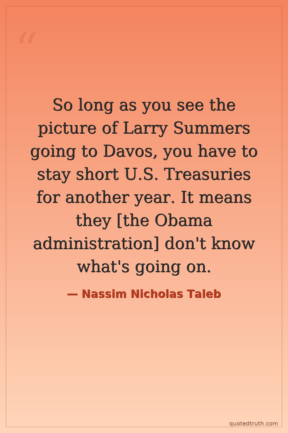 So long as you see the picture of Larry Summers going to Davos, you have to stay short U.S. Treasuries for another year. It means they [the Obama administration] don't know what's going on.