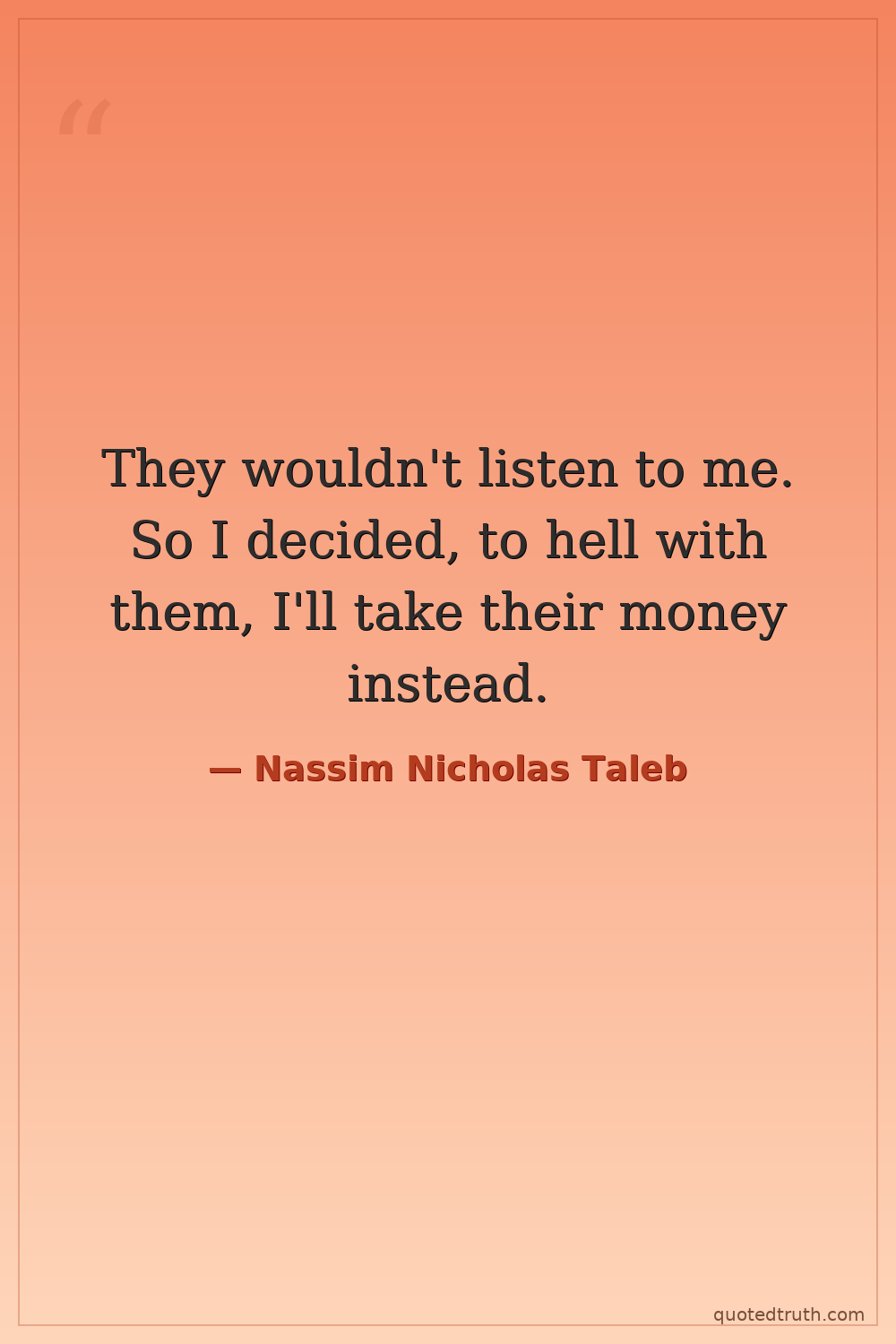 They wouldn't listen to me. So I decided, to hell with them, I'll take their money instead.