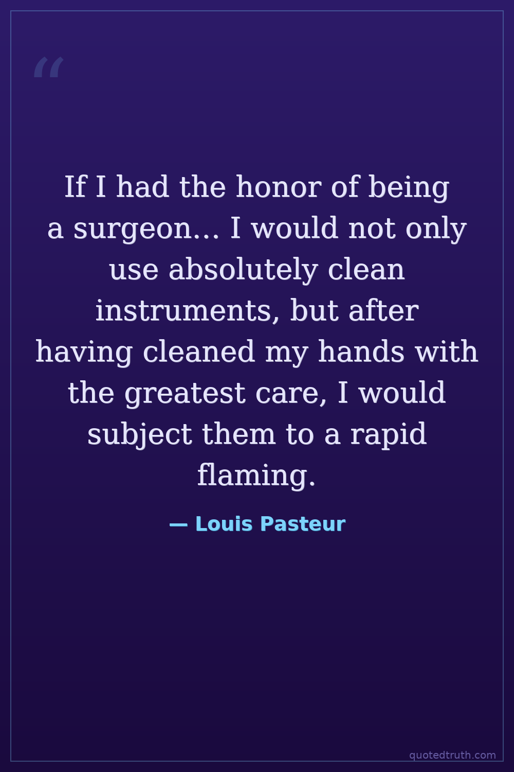 If I had the honor of being a surgeon… I would not only use absolutely clean instruments, but after having cleaned my hands with the greatest care, I would subject them to a rapid flaming.