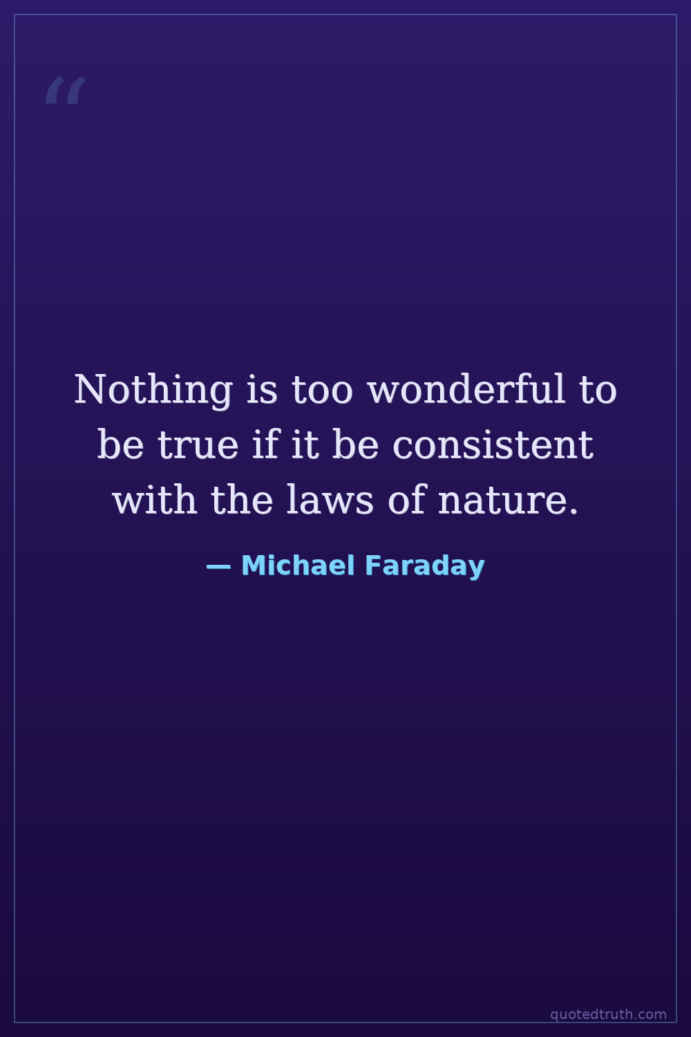 Nothing is too wonderful to be true if it be consistent with the laws of nature.