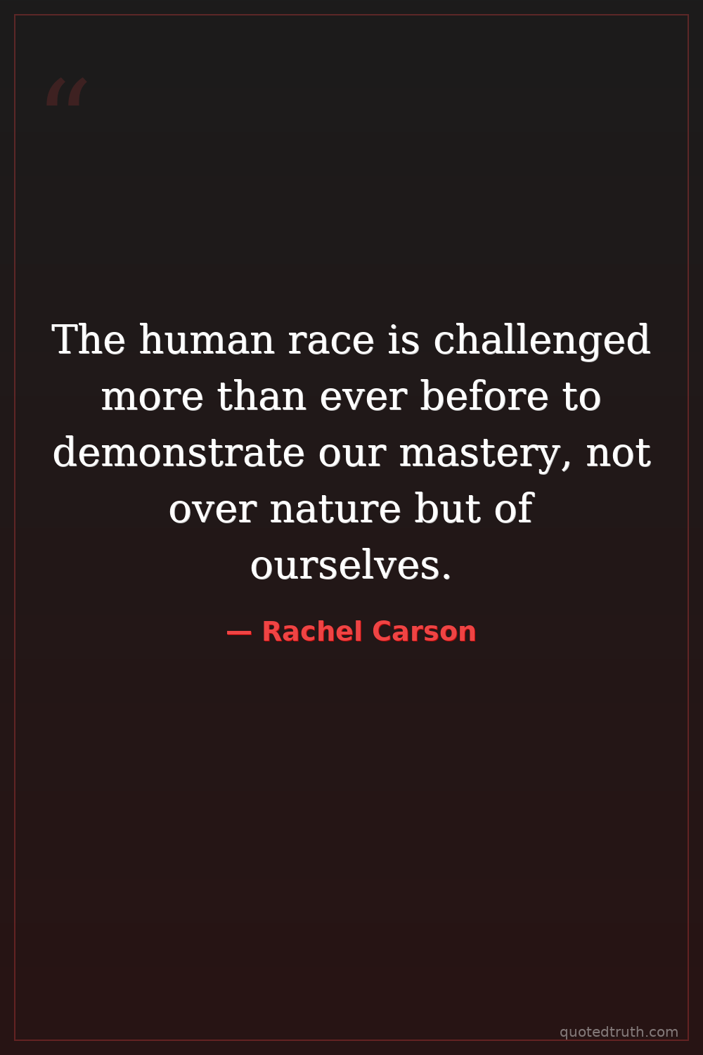 The human race is challenged more than ever before to demonstrate our mastery, not over nature but of ourselves.
