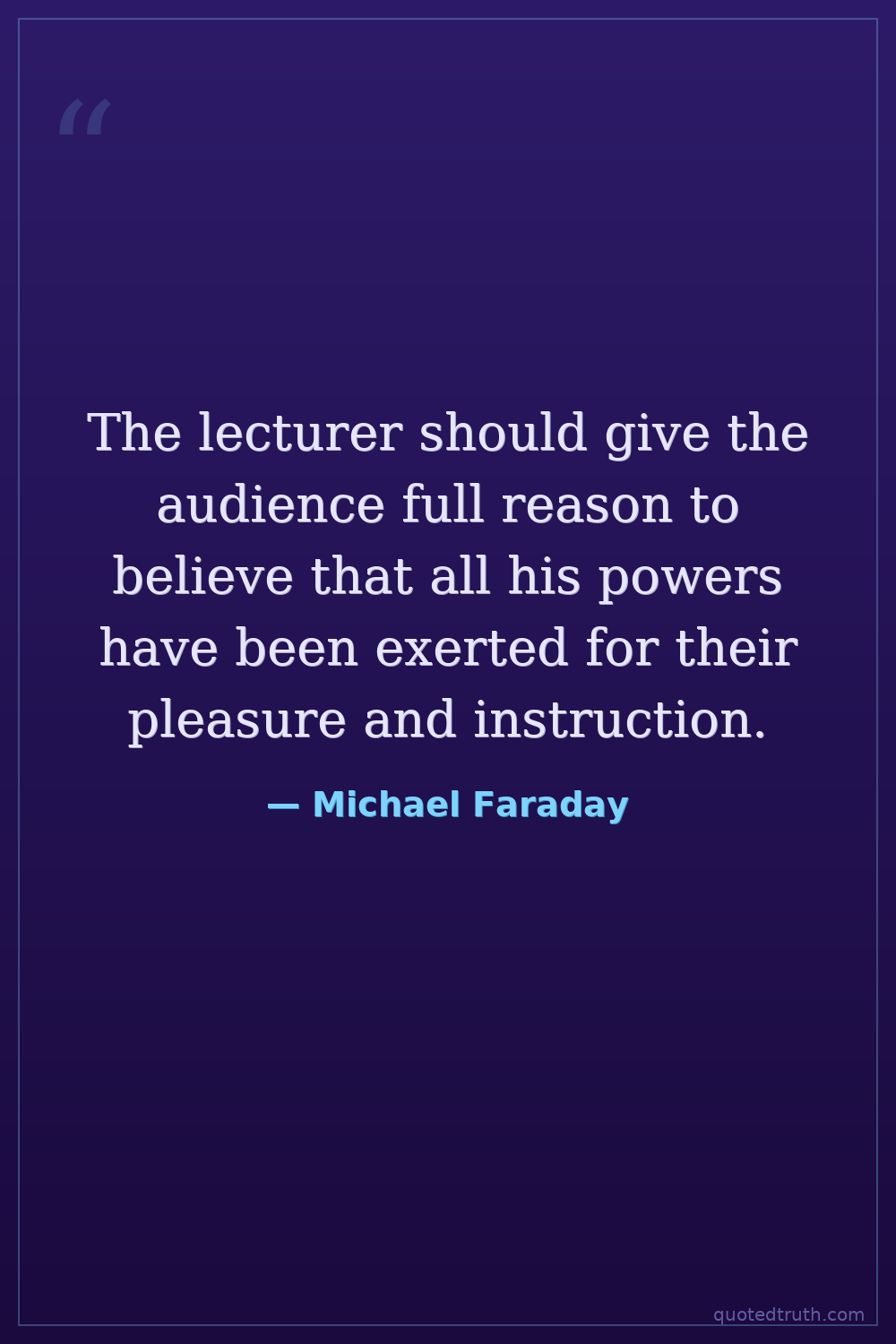 The lecturer should give the audience full reason to believe that all his powers have been exerted for their pleasure and instruction.