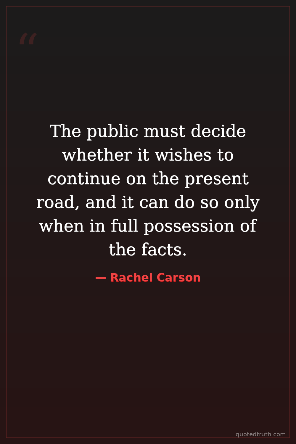 The public must decide whether it wishes to continue on the present road, and it can do so only when in full possession of the facts.