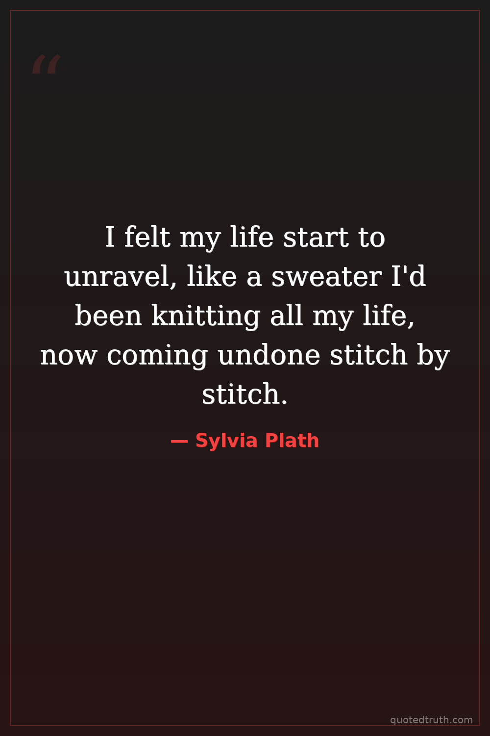 I felt my life start to unravel, like a sweater I'd been knitting all my life, now coming undone stitch by stitch.