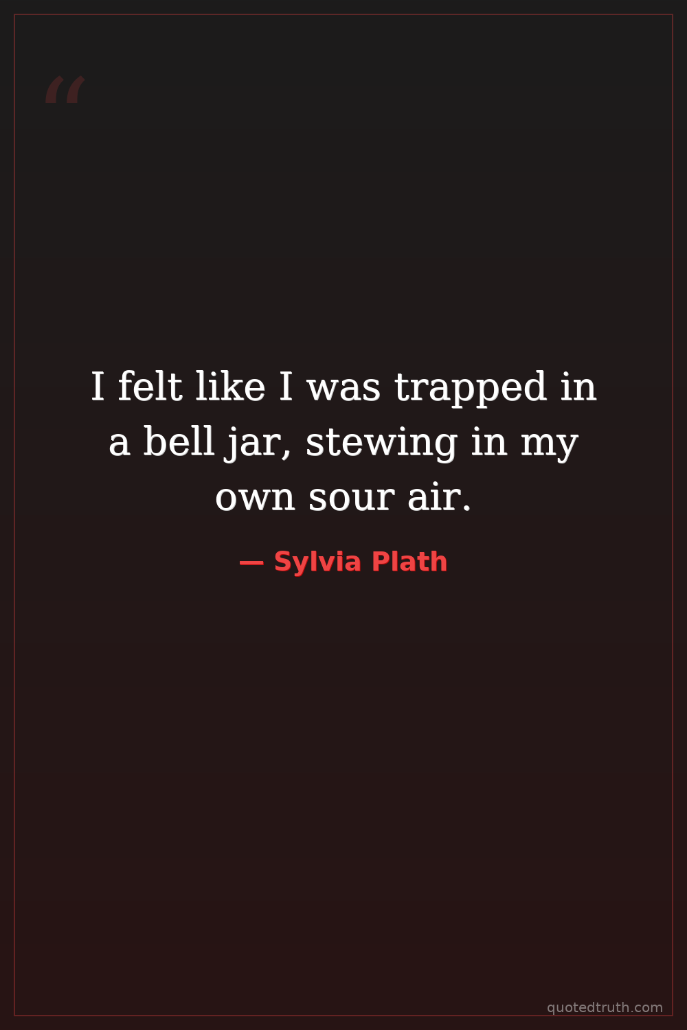 I felt like I was trapped in a bell jar, stewing in my own sour air.