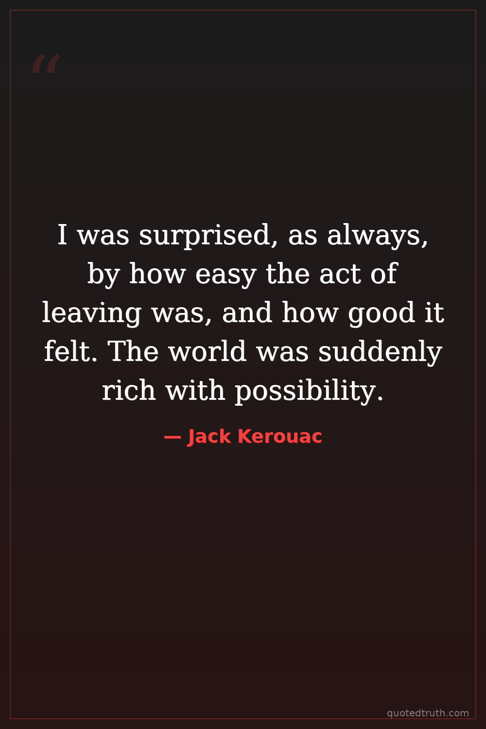 I was surprised, as always, by how easy the act of leaving was, and how good it felt. The world was suddenly rich with possibility.