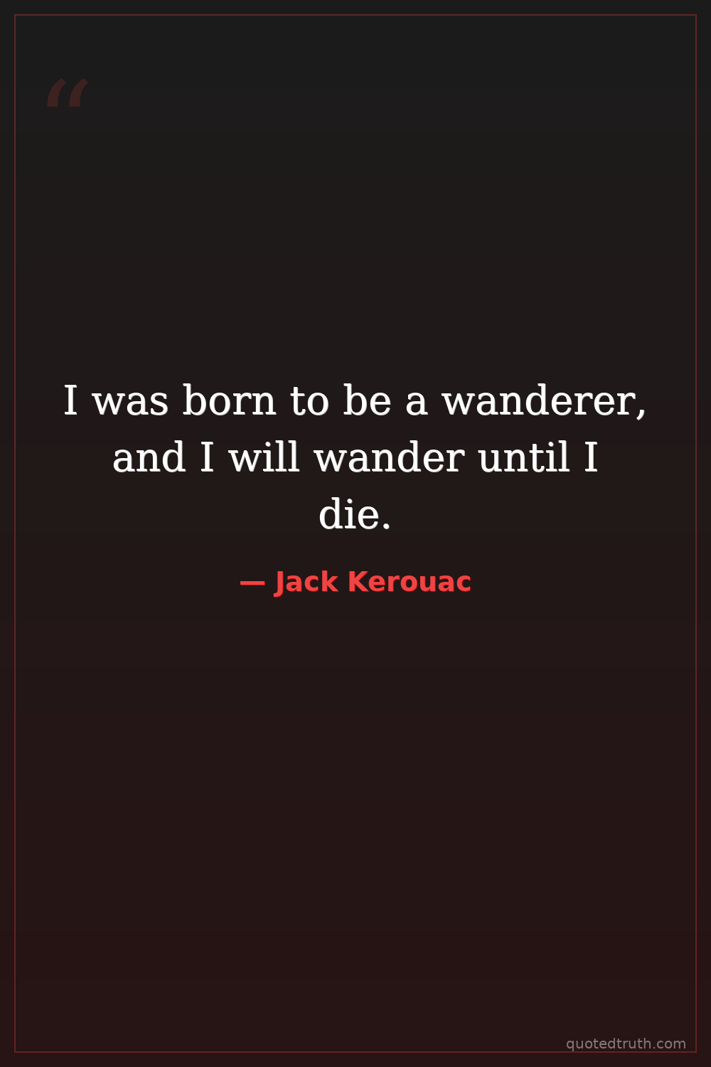 I was born to be a wanderer, and I will wander until I die.