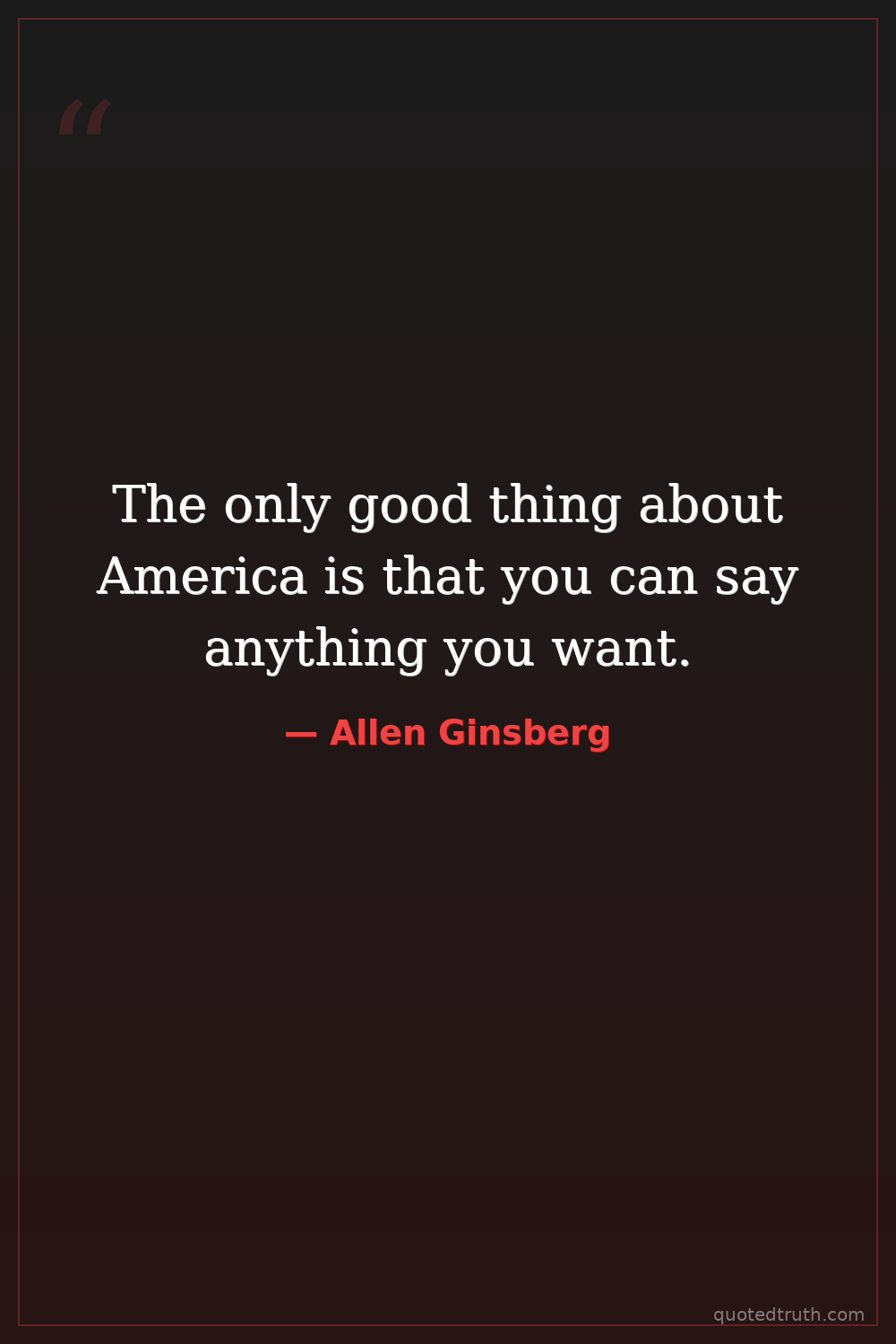 The only good thing about America is that you can say anything you want.