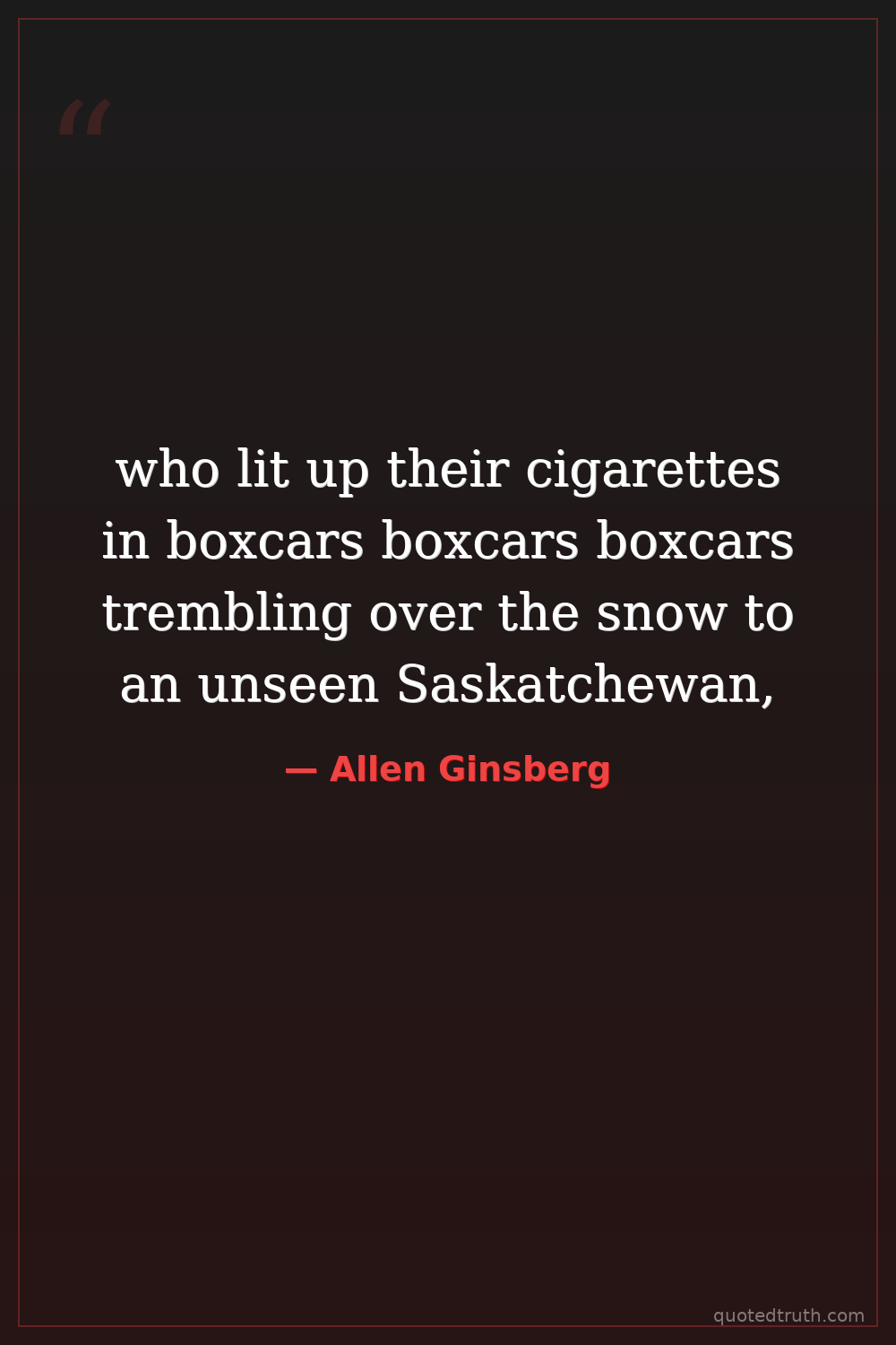 who lit up their cigarettes in boxcars boxcars boxcars trembling over the snow to an unseen Saskatchewan,