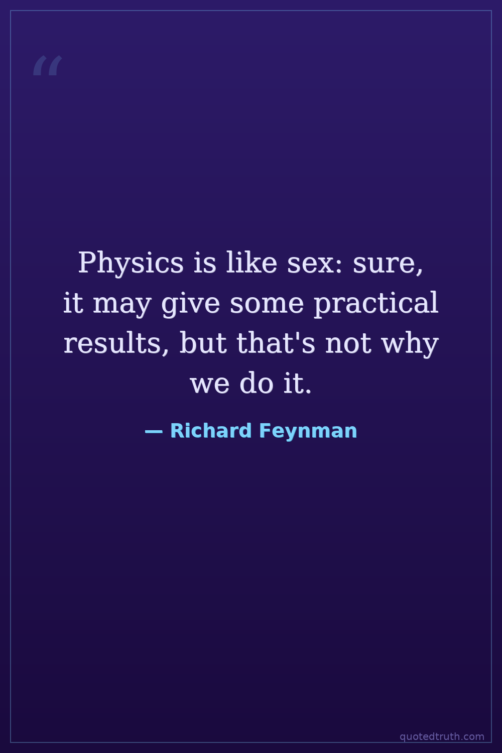Physics is like sex: sure, it may give some practical results, but that's not why we do it.