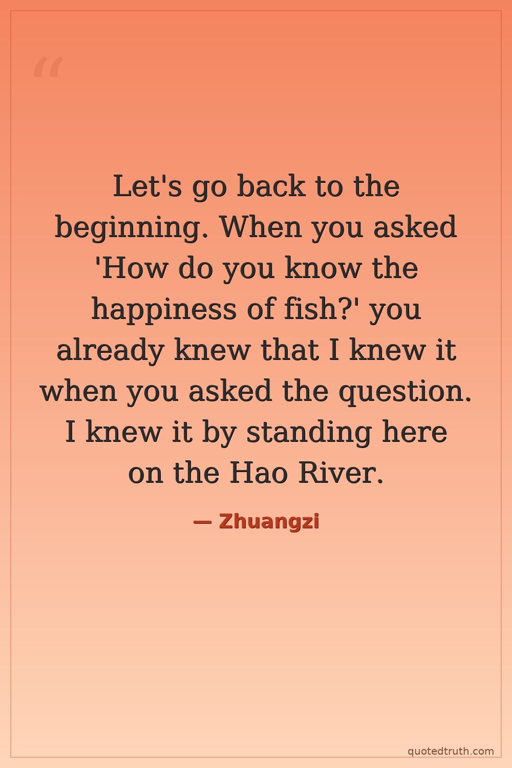 Let's go back to the beginning. When you asked 'How do you know the happiness of fish?' you already knew that I knew it when you asked the question. I knew it by standing here on the Hao River.
