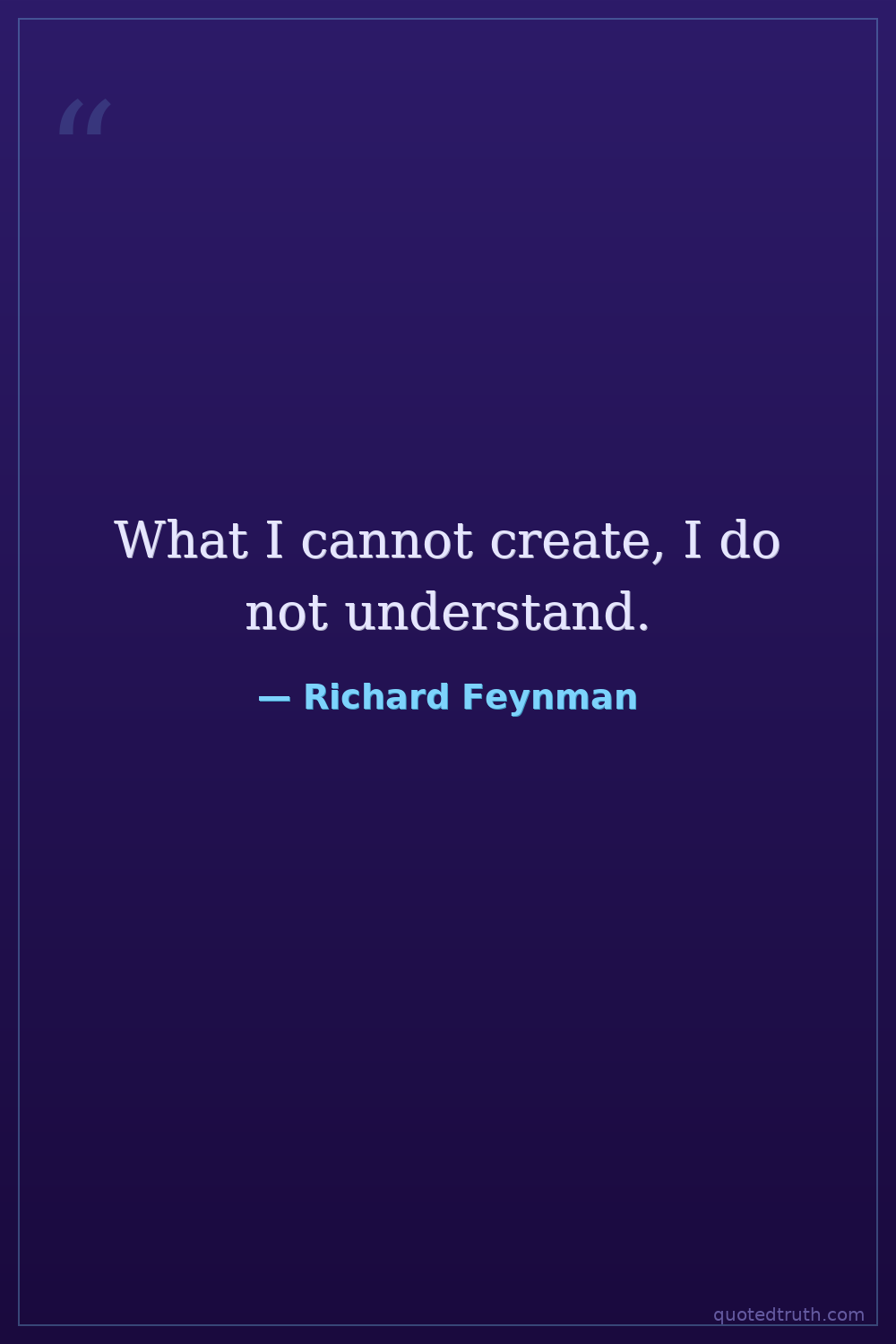 What I cannot create, I do not understand.