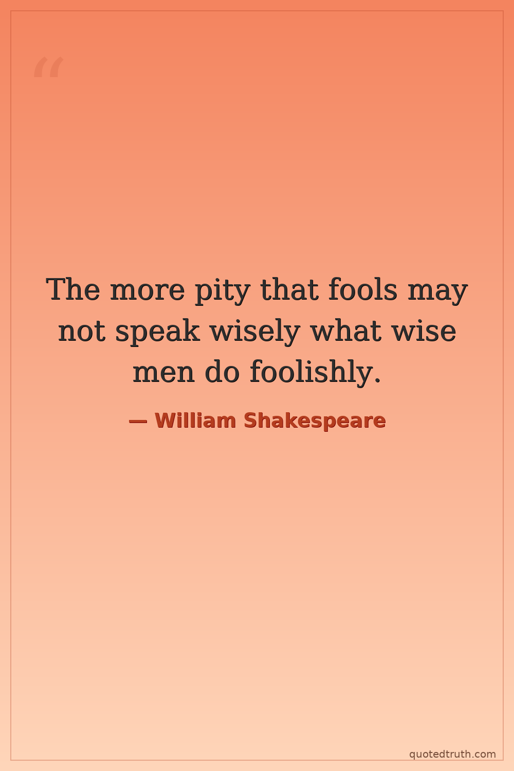 The more pity that fools may not speak wisely what wise men do foolishly.