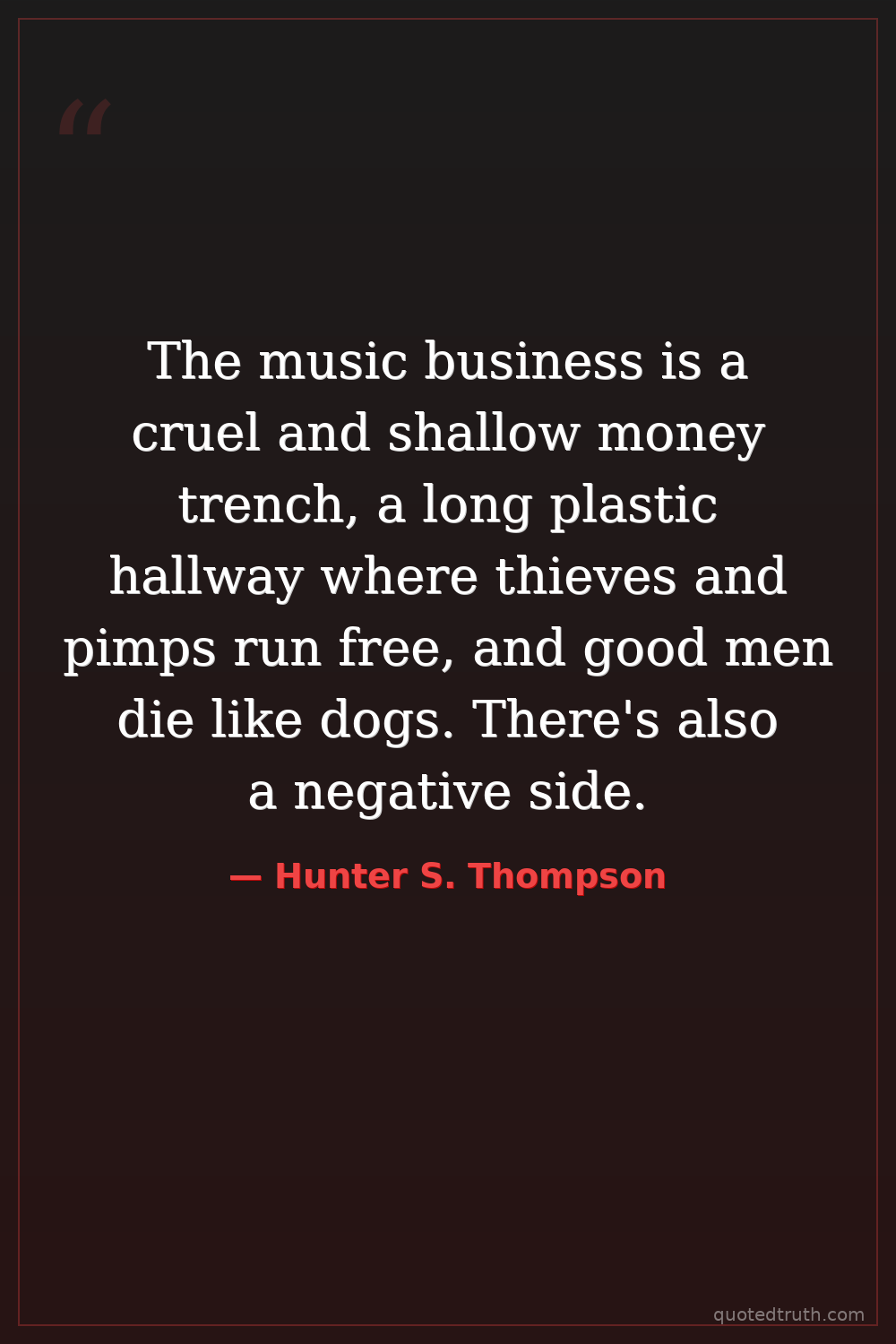 The music business is a cruel and shallow money trench, a long plastic hallway where thieves and pimps run free, and good men die like dogs. There's also a negative side.