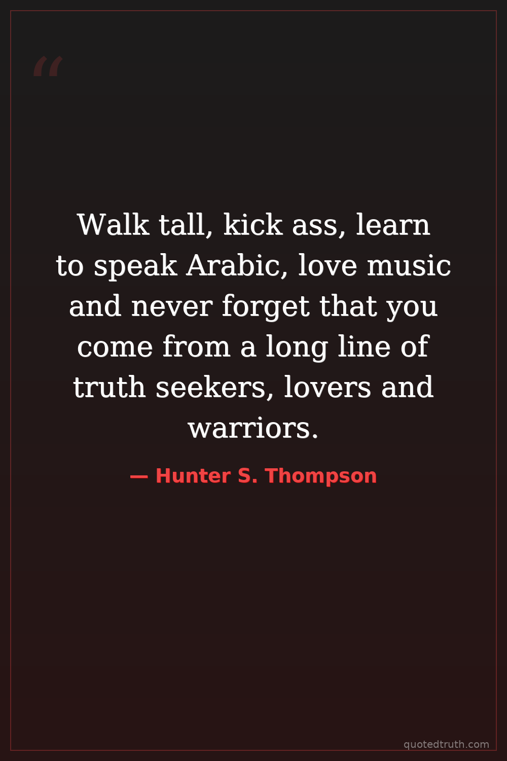 Walk tall, kick ass, learn to speak Arabic, love music and never forget that you come from a long line of truth seekers, lovers and warriors.
