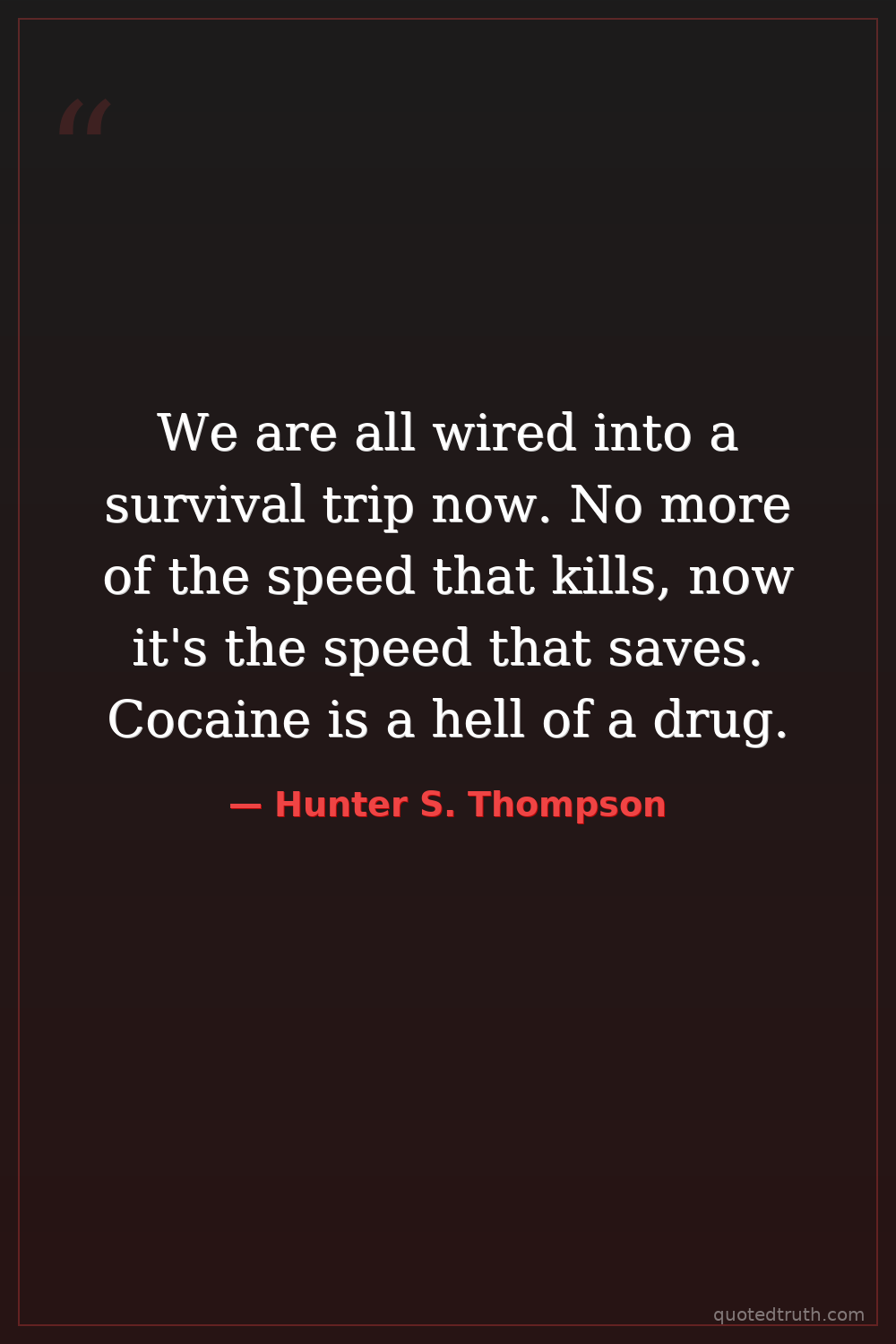 We are all wired into a survival trip now. No more of the speed that kills, now it's the speed that saves. Cocaine is a hell of a drug.