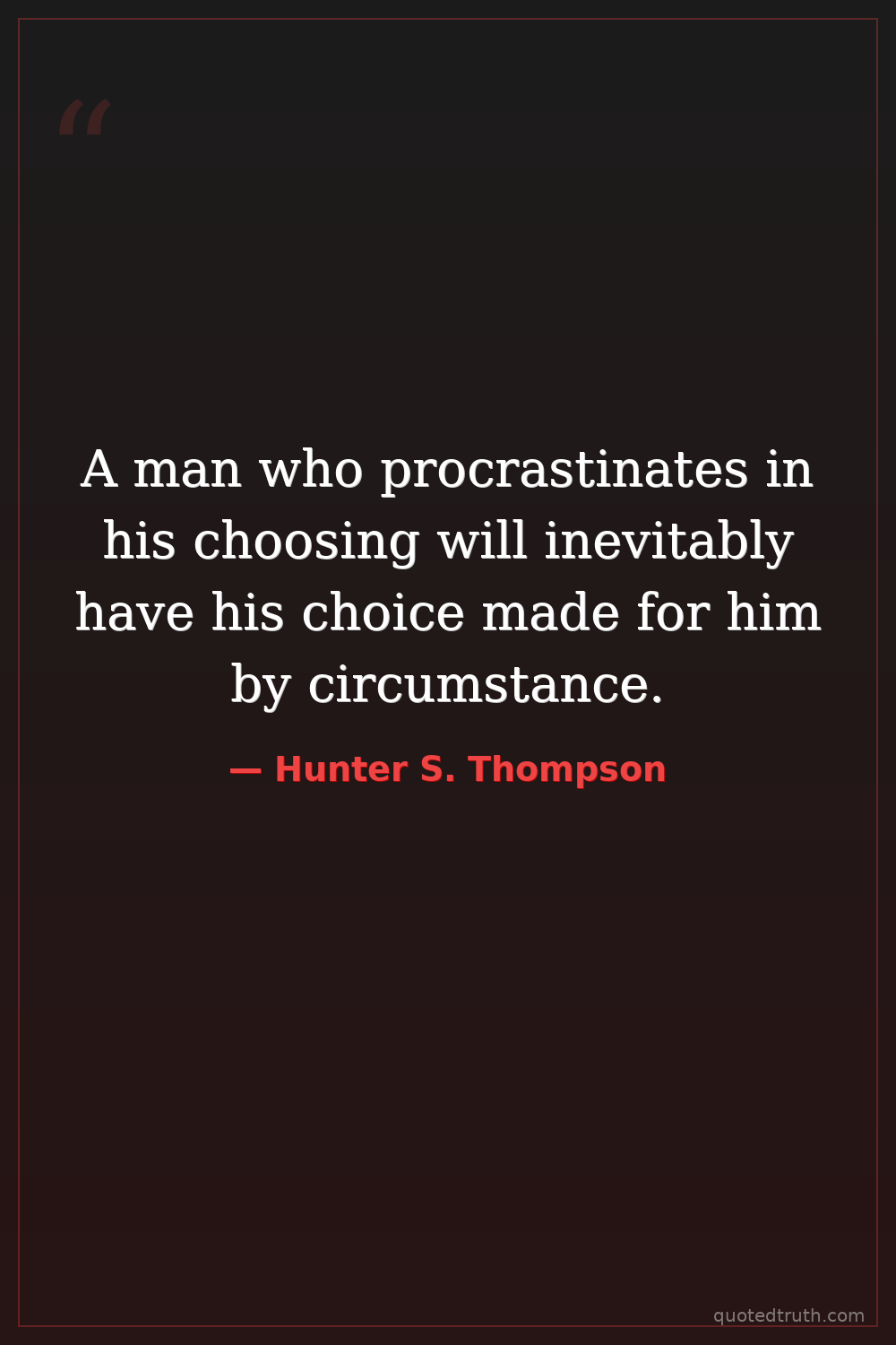 A man who procrastinates in his choosing will inevitably have his choice made for him by circumstance.