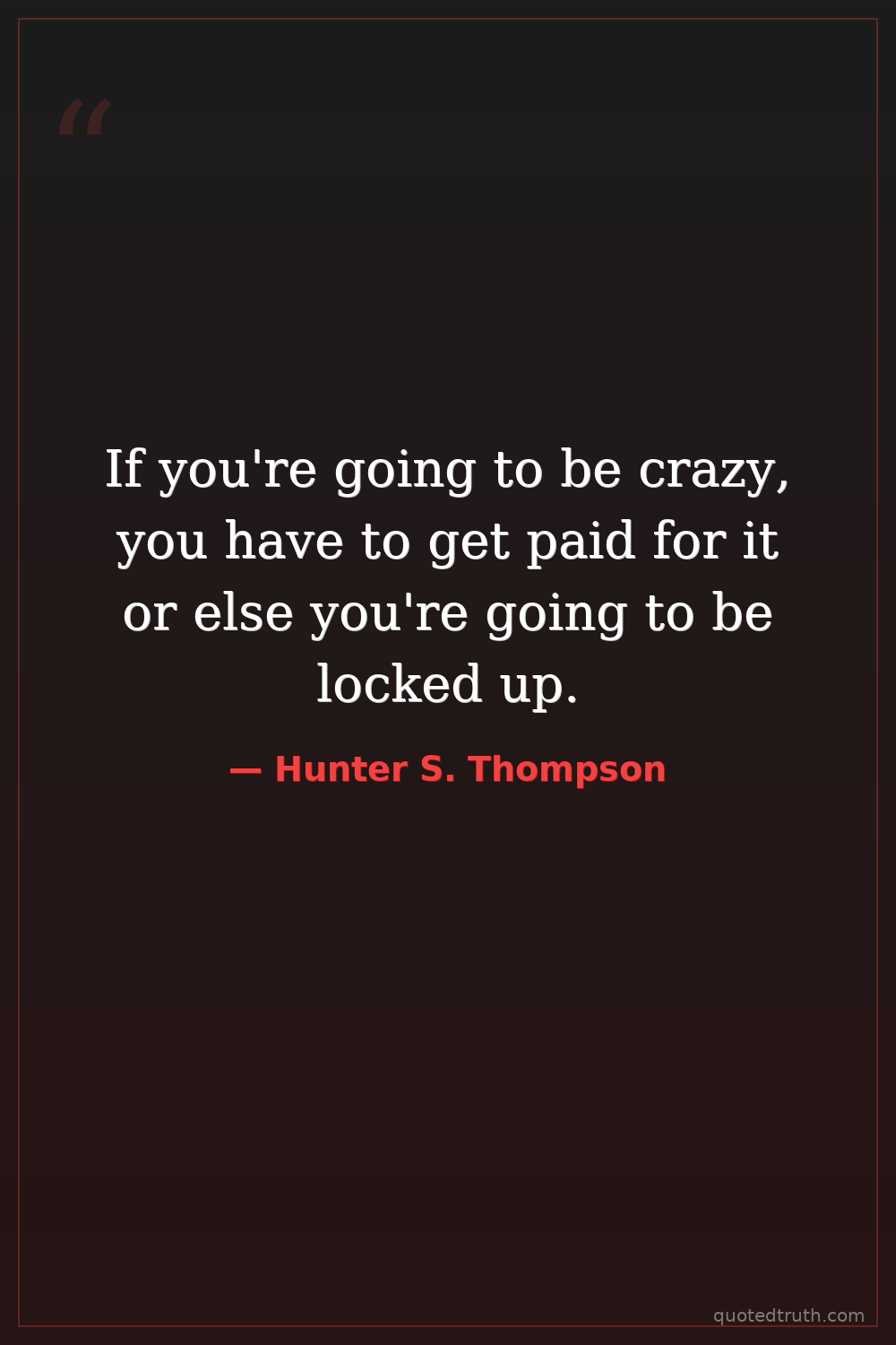 If you're going to be crazy, you have to get paid for it or else you're going to be locked up.