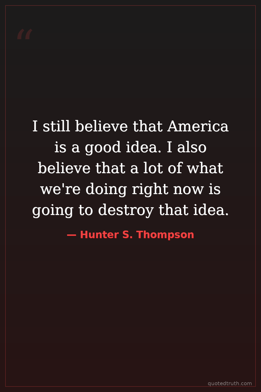 I still believe that America is a good idea. I also believe that a lot of what we're doing right now is going to destroy that idea.