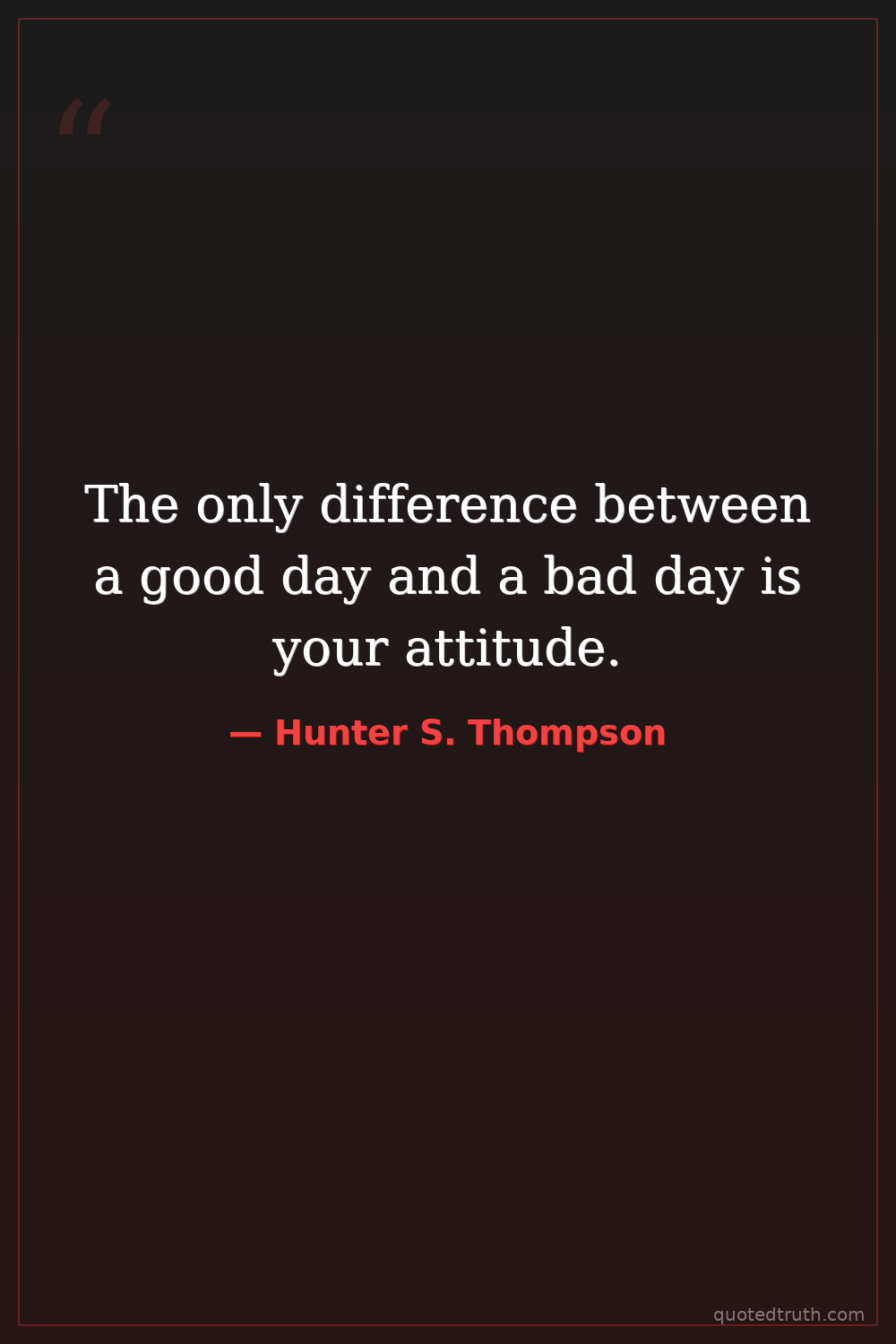 The only difference between a good day and a bad day is your attitude.