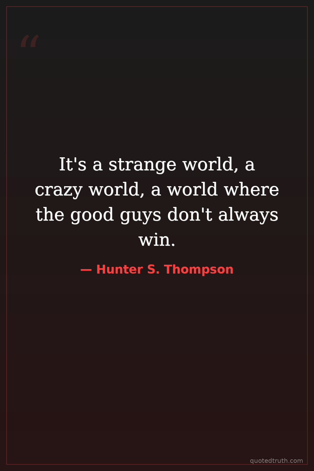 It's a strange world, a crazy world, a world where the good guys don't always win.