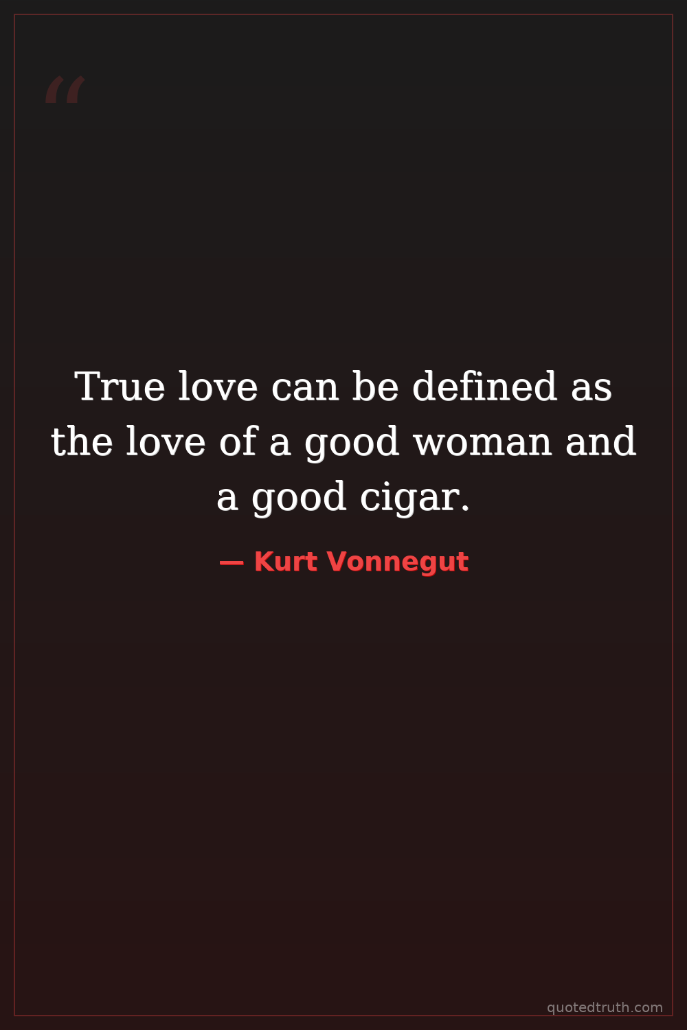 True love can be defined as the love of a good woman and a good cigar.