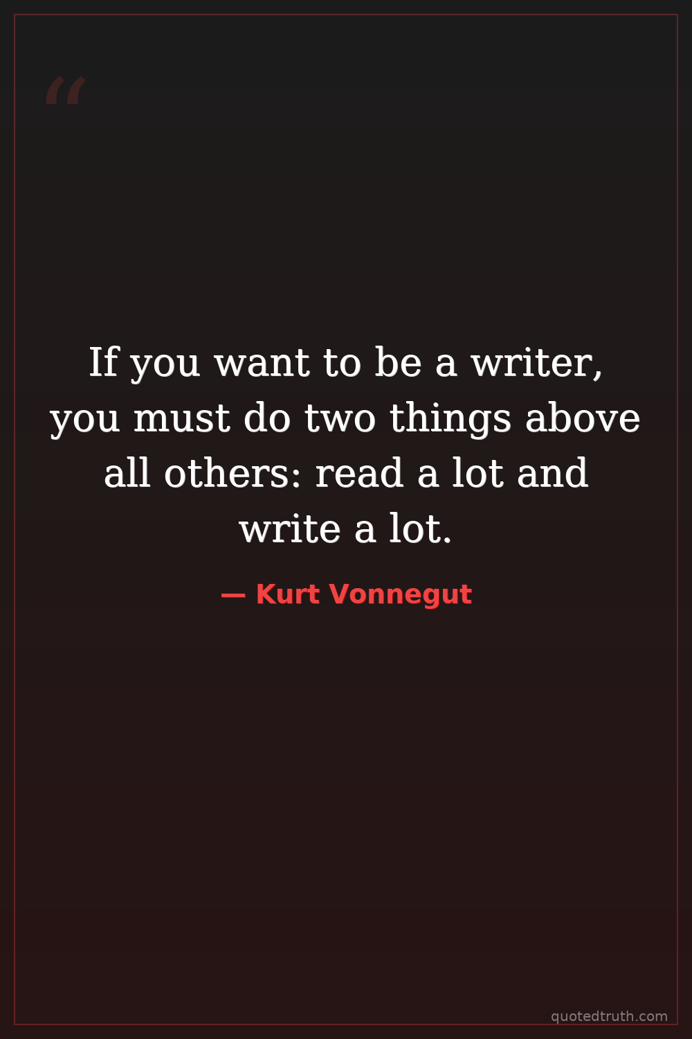 If you want to be a writer, you must do two things above all others: read a lot and write a lot.