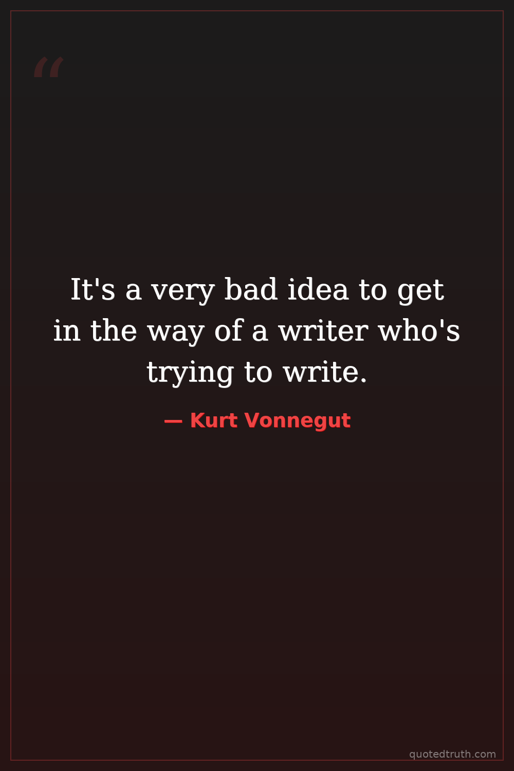 It's a very bad idea to get in the way of a writer who's trying to write.