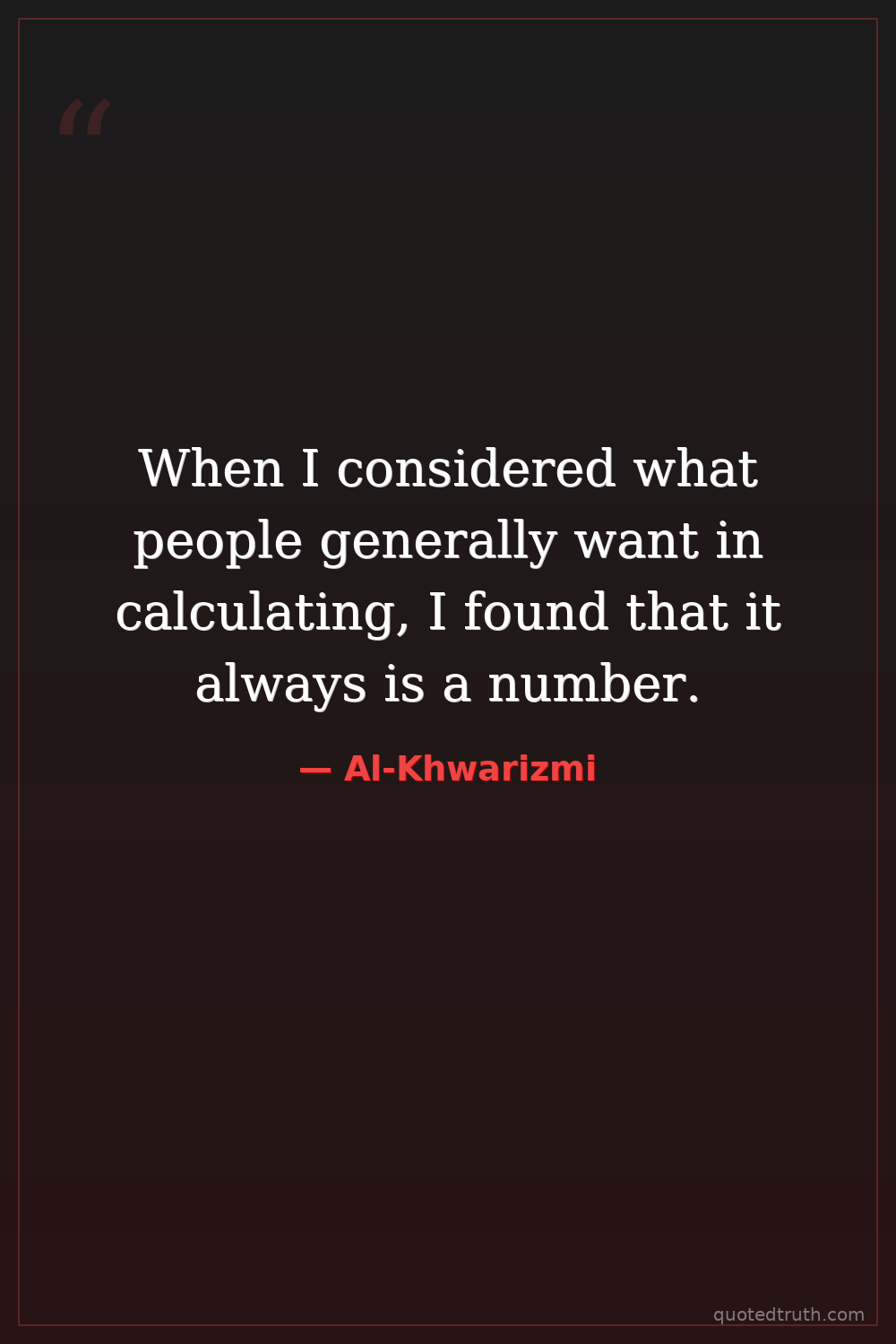 Strange & Unusual"Unfortunately, there are no documented controversial, provocative, offensive, politically incorrect, or divisive quotes from Al-Khwarizmi. His surviving works are primarily mathematical and astronomic…"