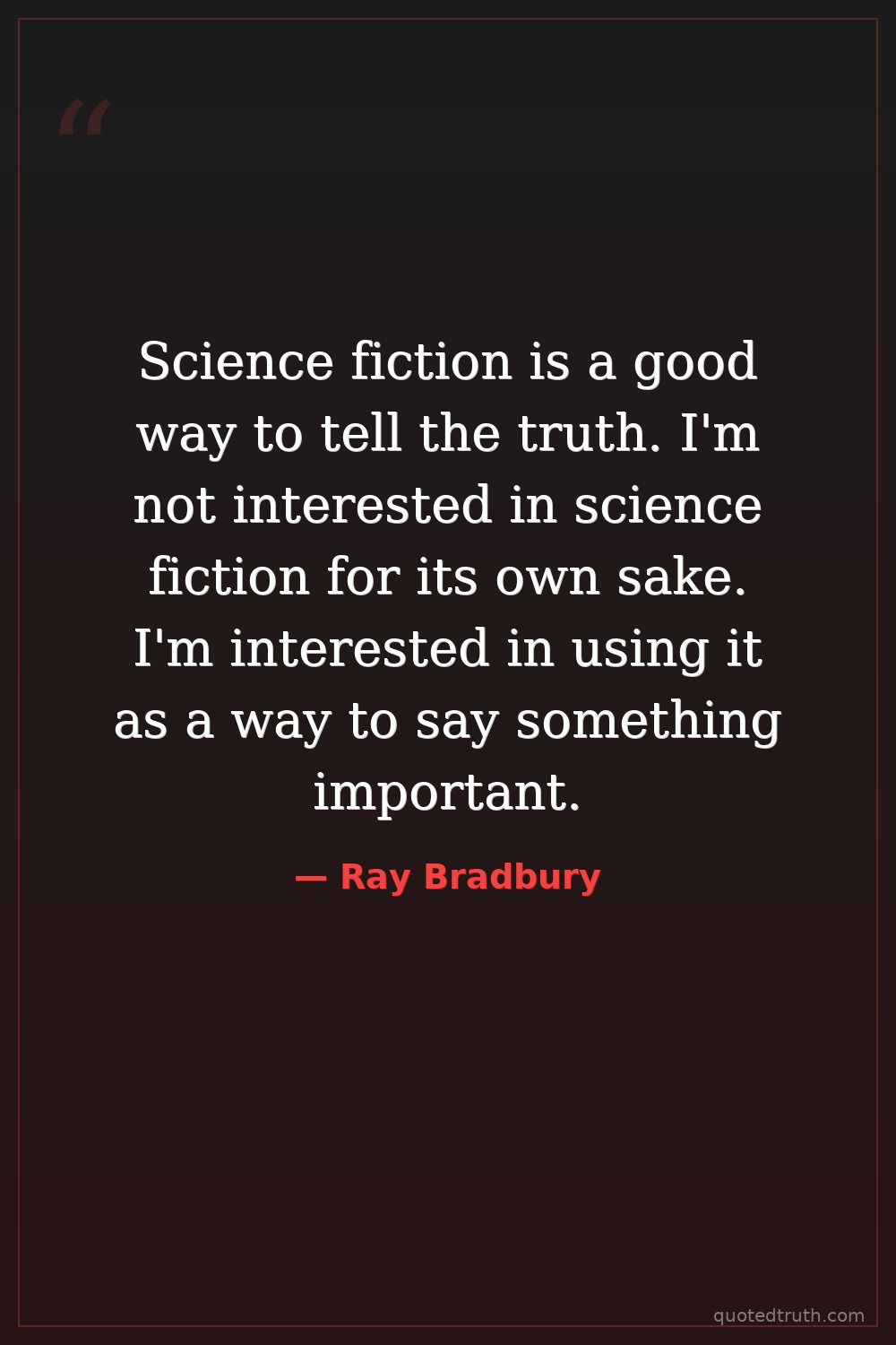 Science fiction is a good way to tell the truth. I'm not interested in science fiction for its own sake. I'm interested in using it as a way to say something important.