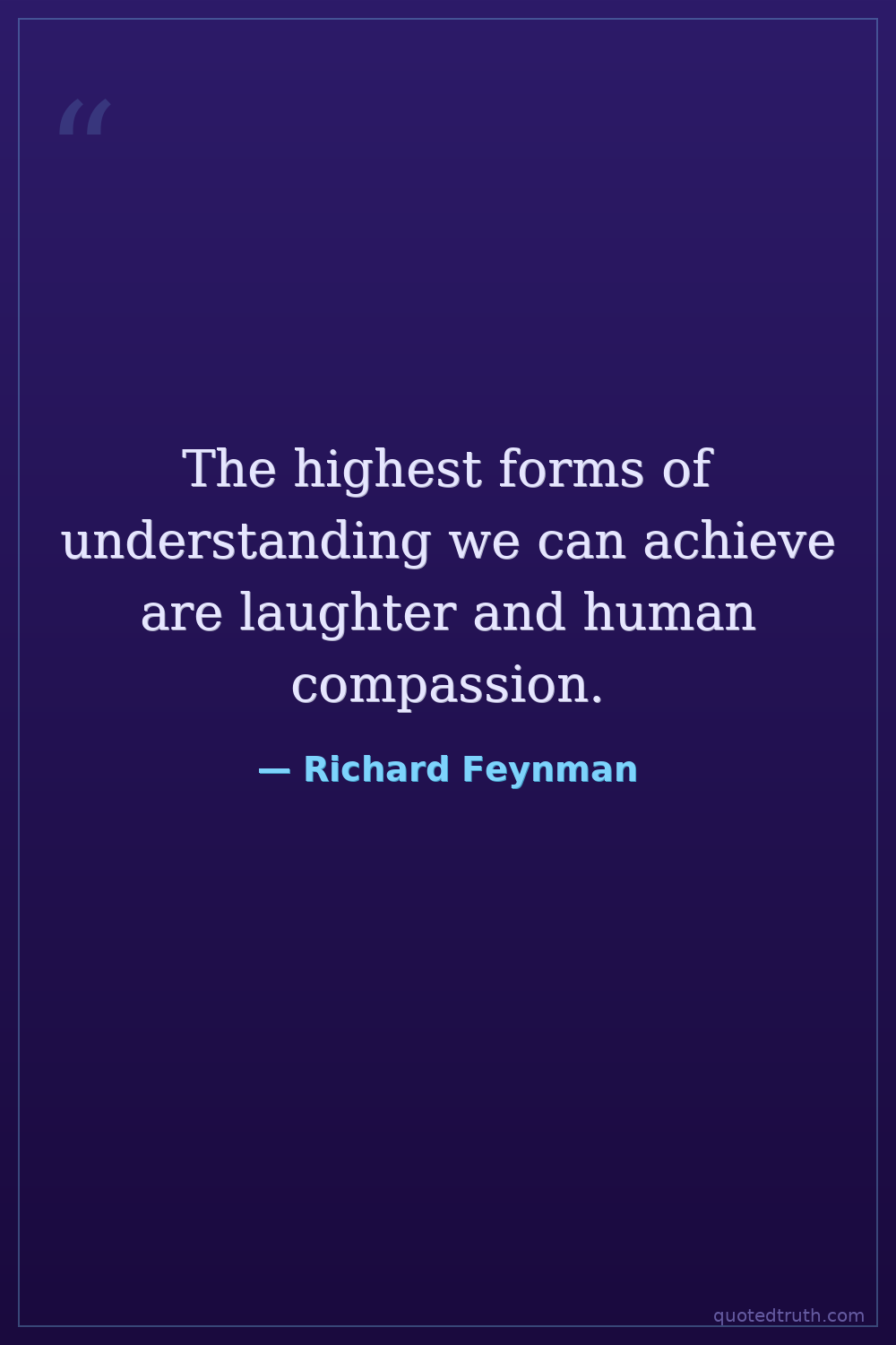 The highest forms of understanding we can achieve are laughter and human compassion.