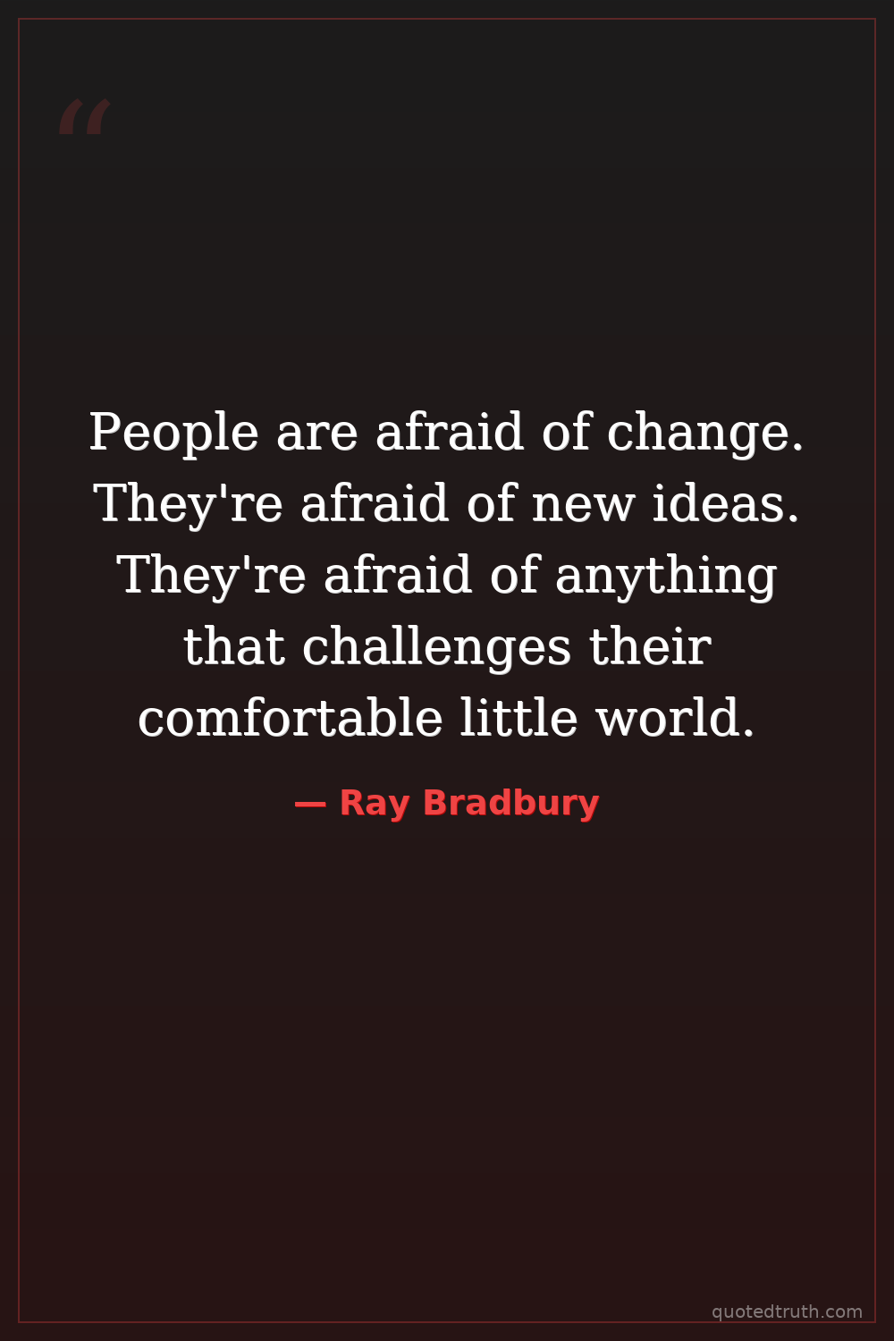 People are afraid of change. They're afraid of new ideas. They're afraid of anything that challenges their comfortable little world.