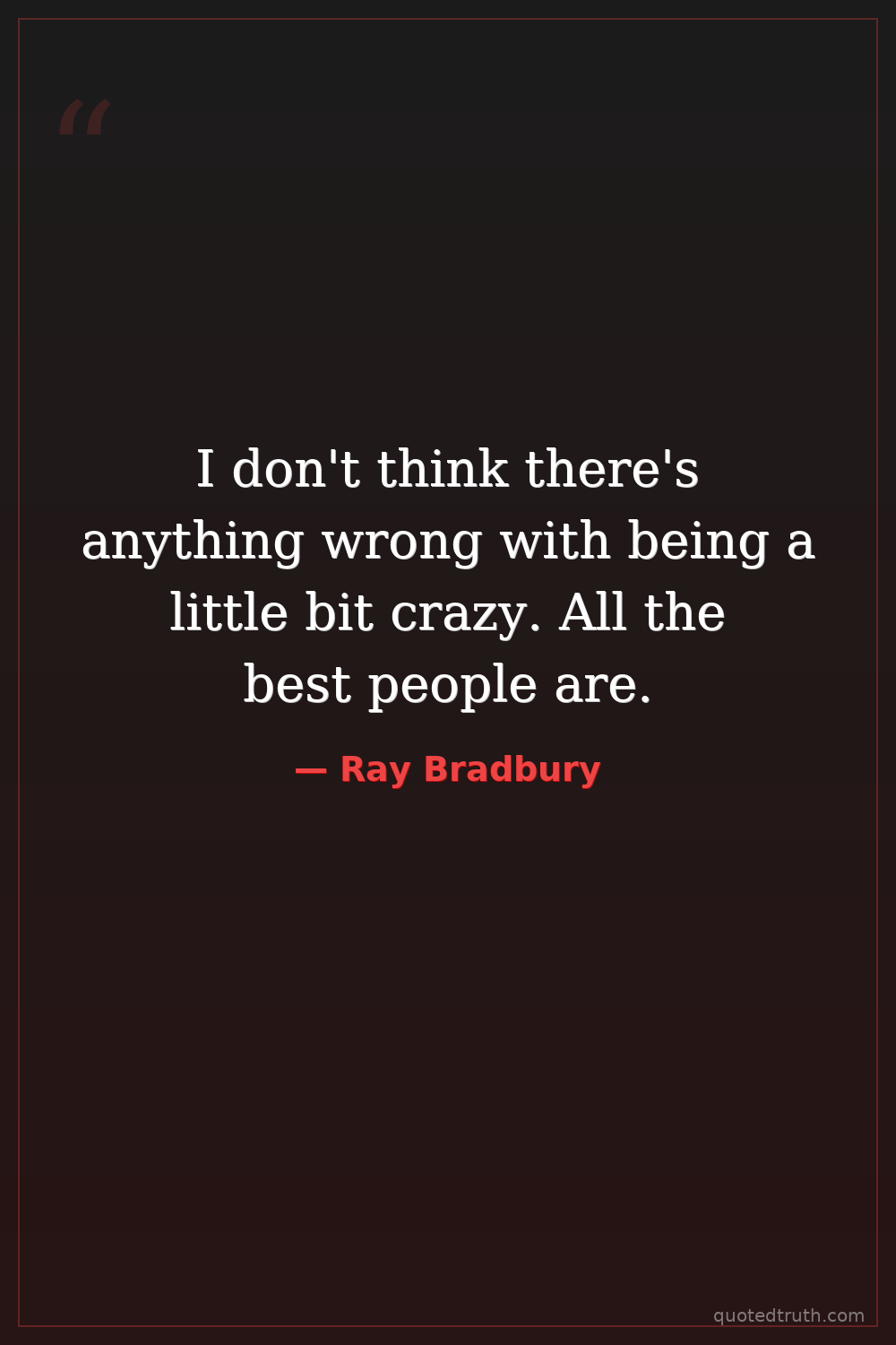 I don't think there's anything wrong with being a little bit crazy. All the best people are.