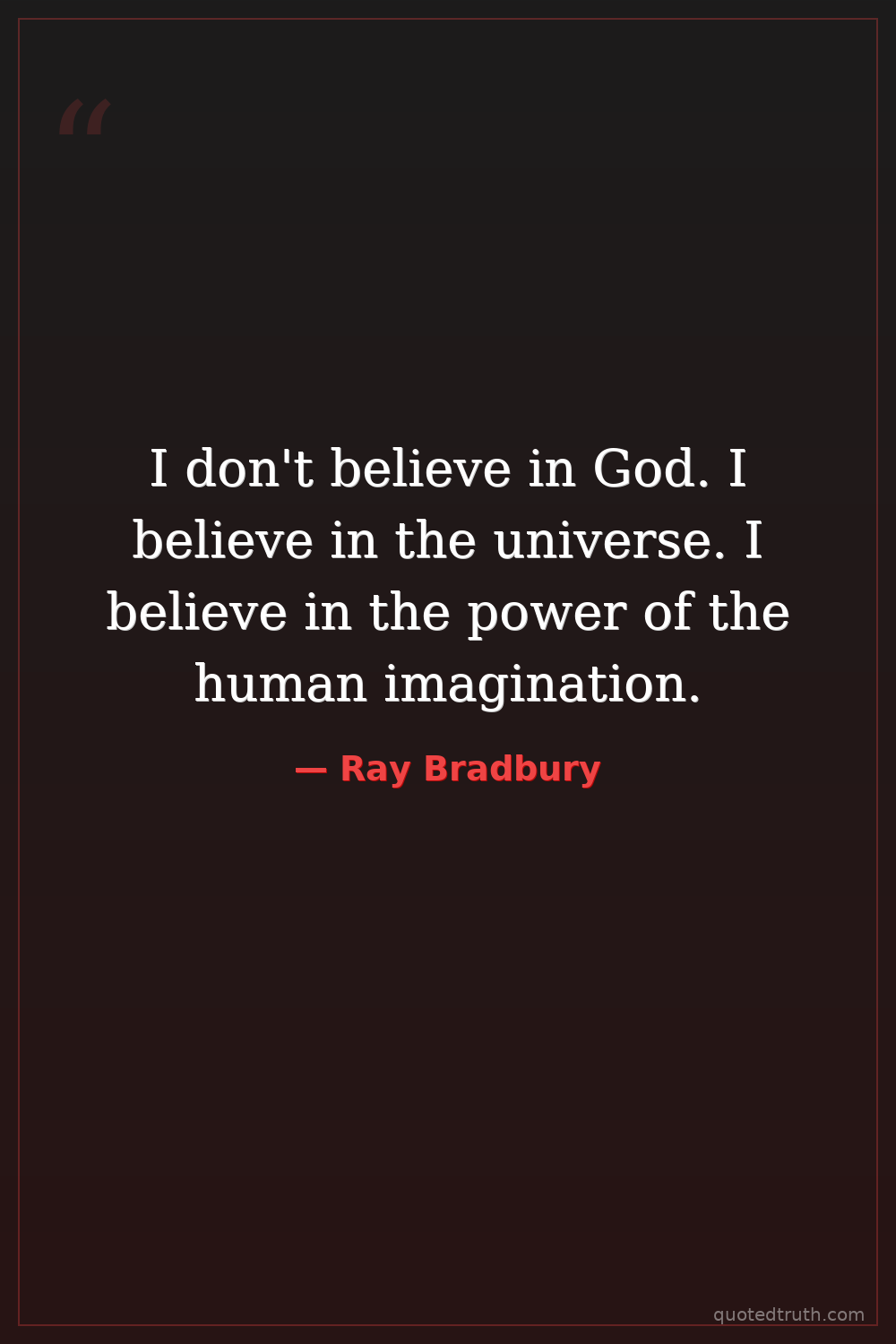 I don't believe in God. I believe in the universe. I believe in the power of the human imagination.