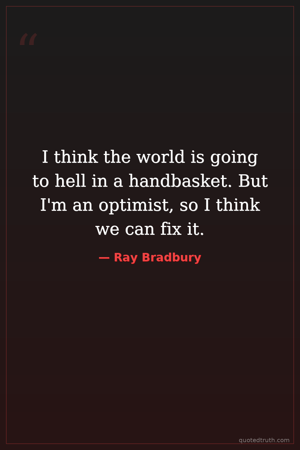 I think the world is going to hell in a handbasket. But I'm an optimist, so I think we can fix it.